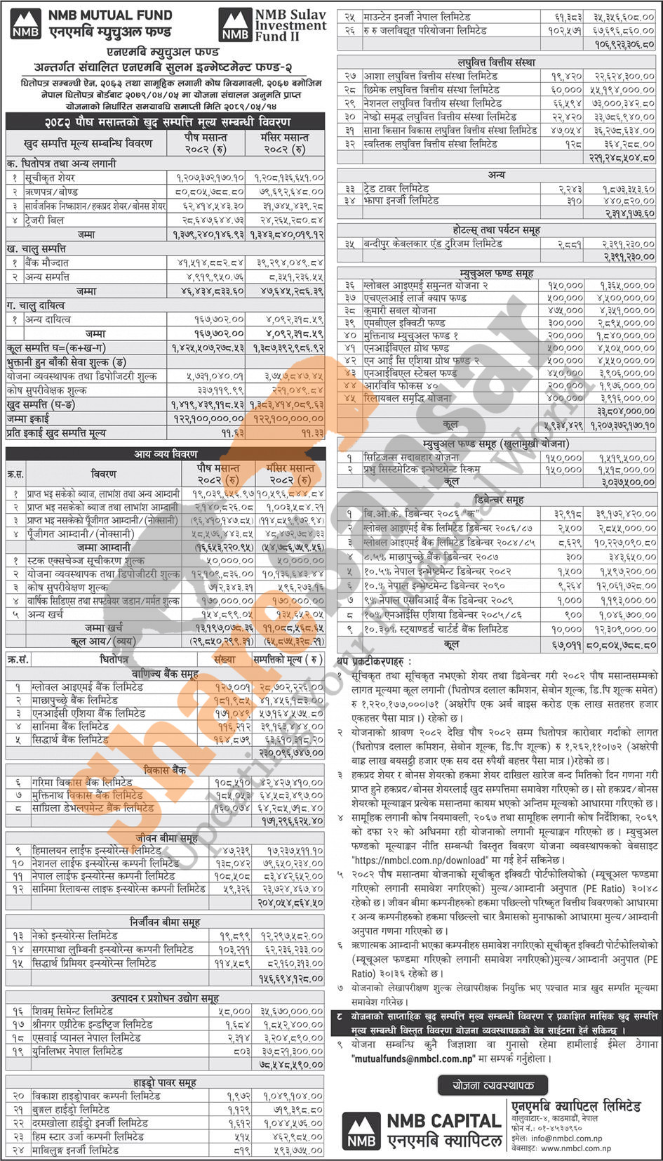 NMB Capital Limited has published "NMB Sulav Investment Fund - II" Net Assets Value (NAV) till Poush, 2082.