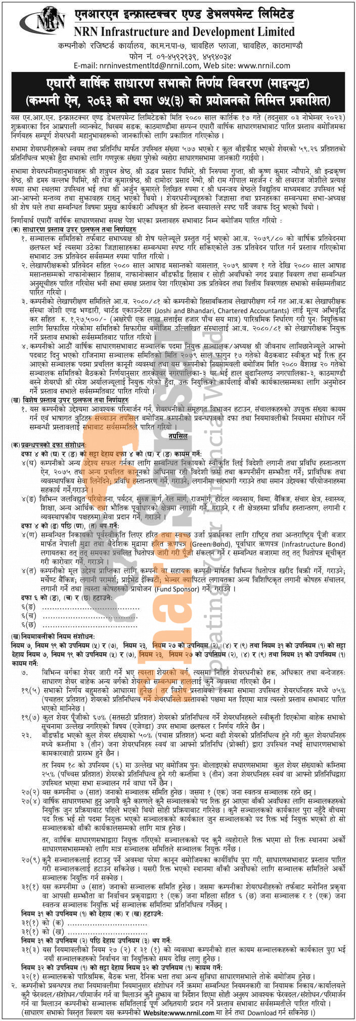 NRN Infrastructure and Development Limited has published the minutes of its 11th AGM.