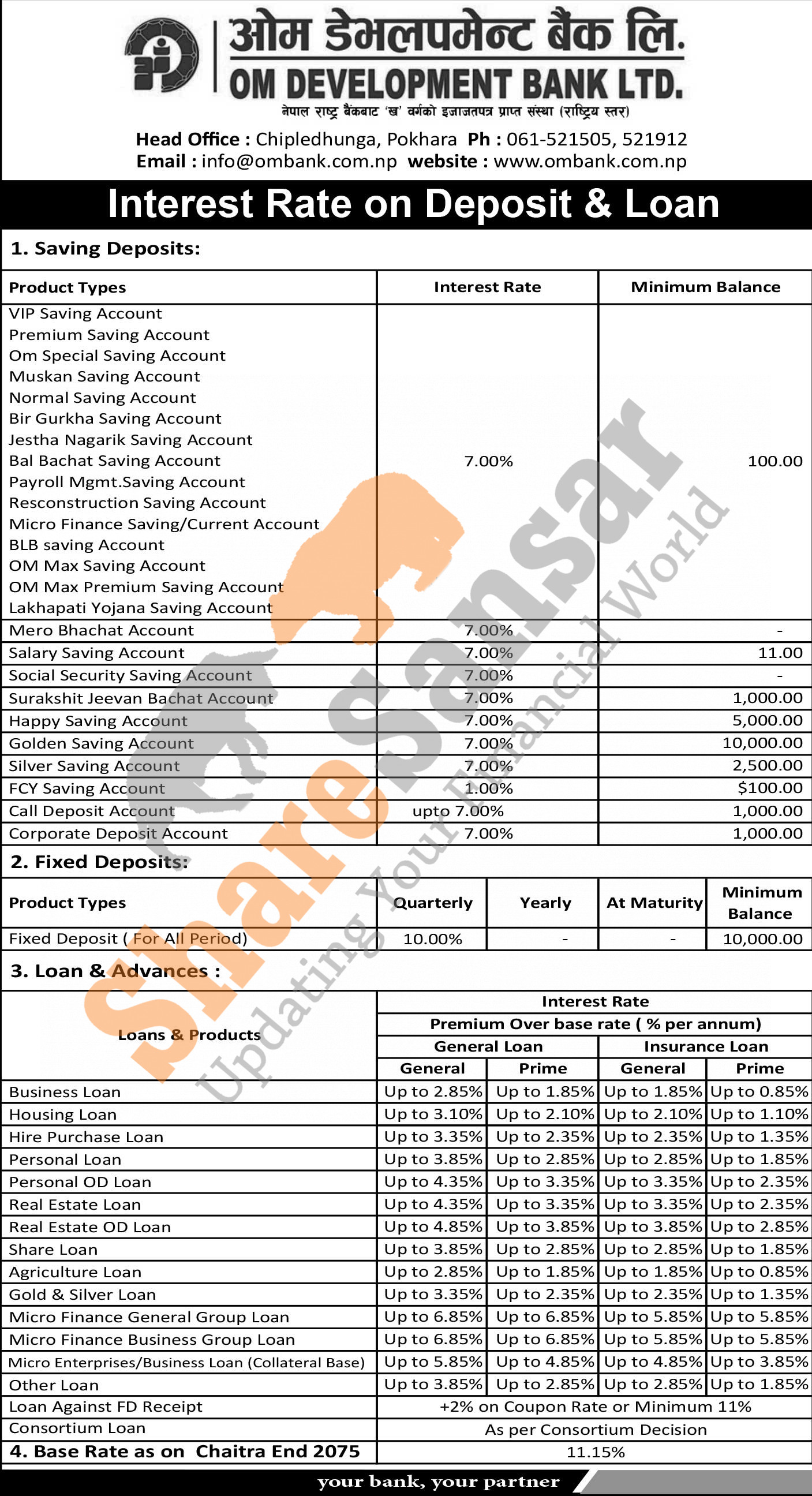 Om Development Bank Limited has published a notice regarding a new interest rate.