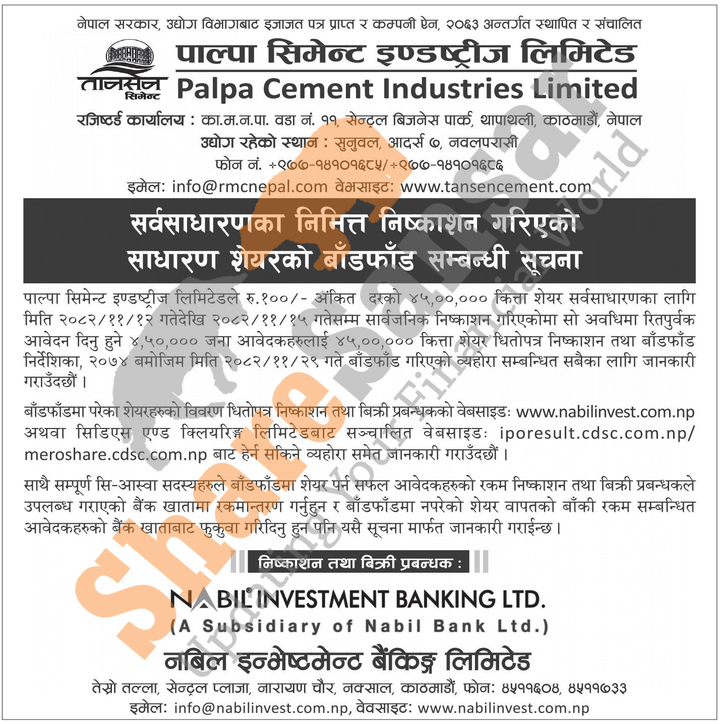 Palpa Cements Industries Limited has allotted its 45,00,000 units IPO shares to the general public on 29th Falgun, 2082.