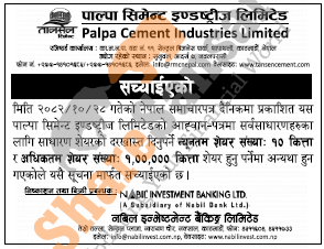 Palpa Cements Industries Limited has made correction on its offer letter which was published on 28th Magh, 2082.