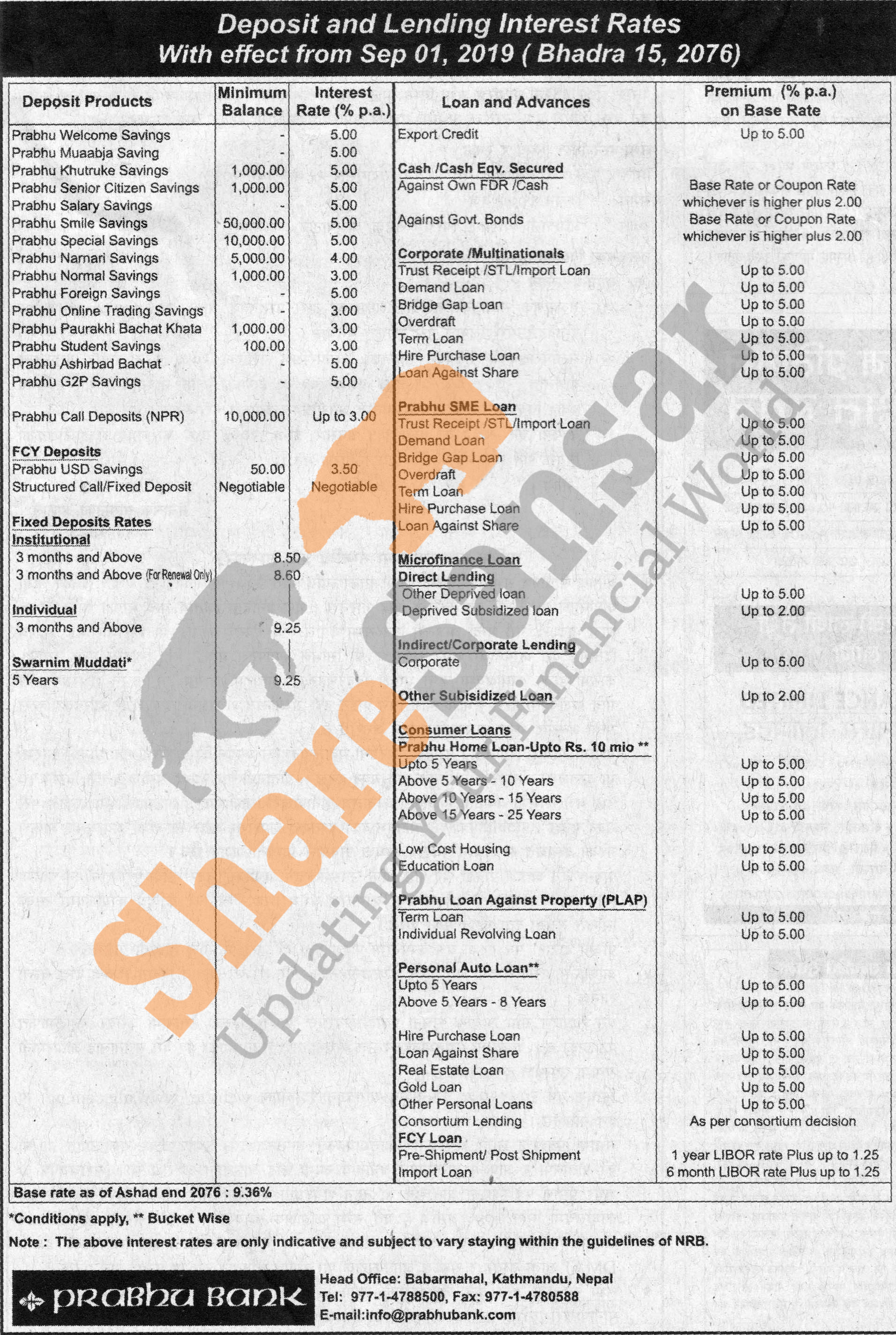 Prabhu Bank Limited has published a notice regarding new interest rate and its effective from 15th Bhadra, 2076.
