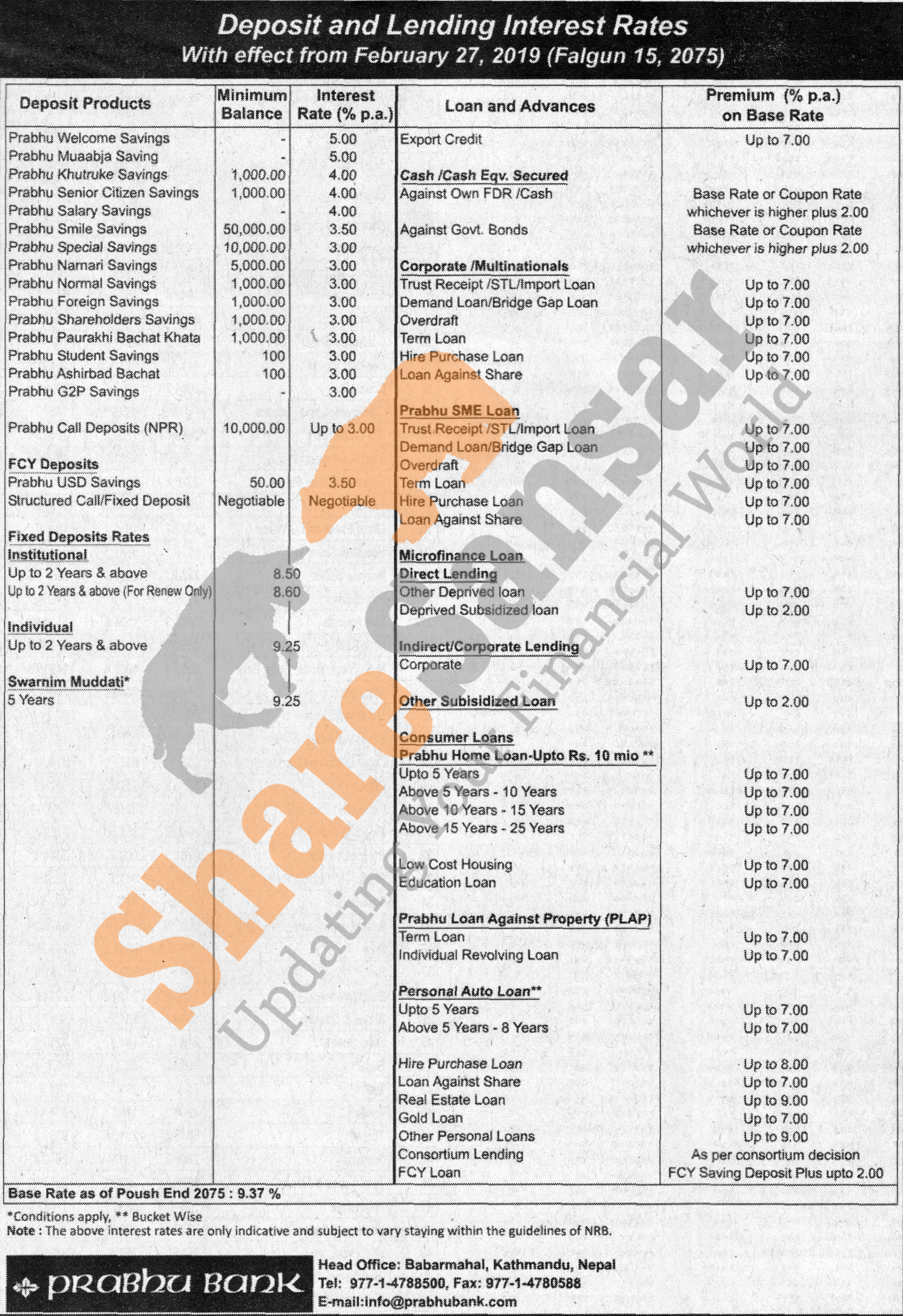 Prabhu Bank Limited has published a notice regarding new interest rate and its effective from 15th Falgun, 2075.
