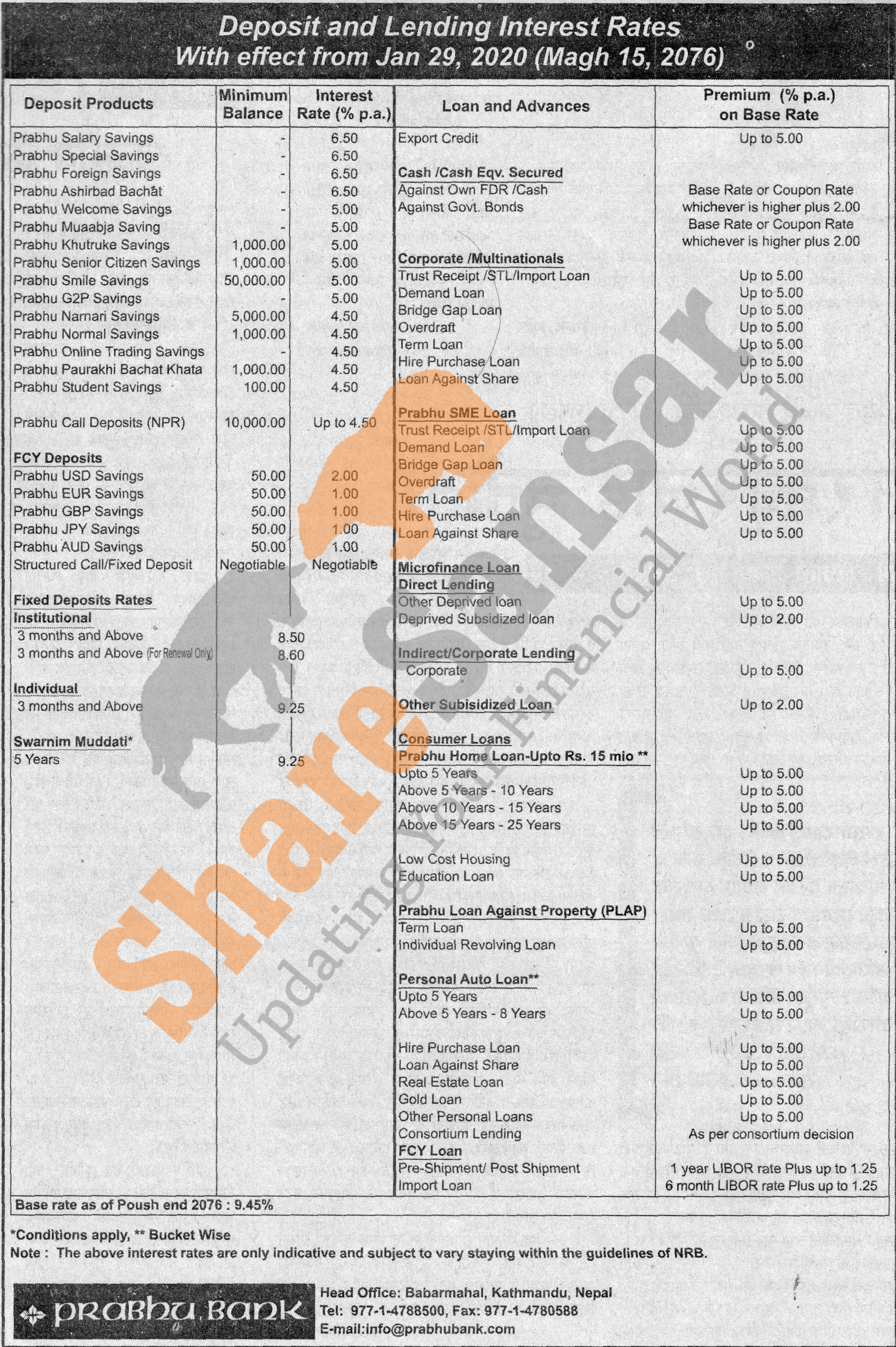 Prabhu Bank Limited has published a notice regarding new interest rate and its effective from 15th Magh, 2076.
