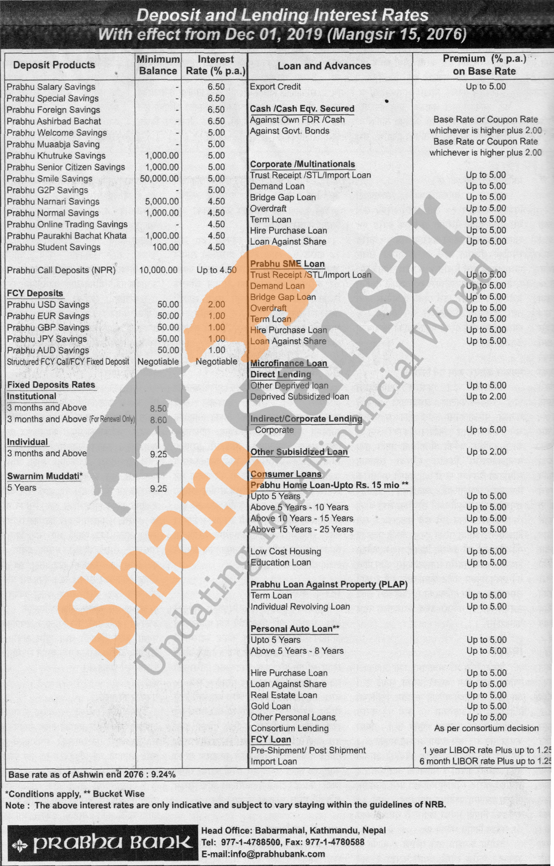 Prabhu Bank Limited has published a notice regarding new interest rate and its effective from 15th Mangsir, 2076.