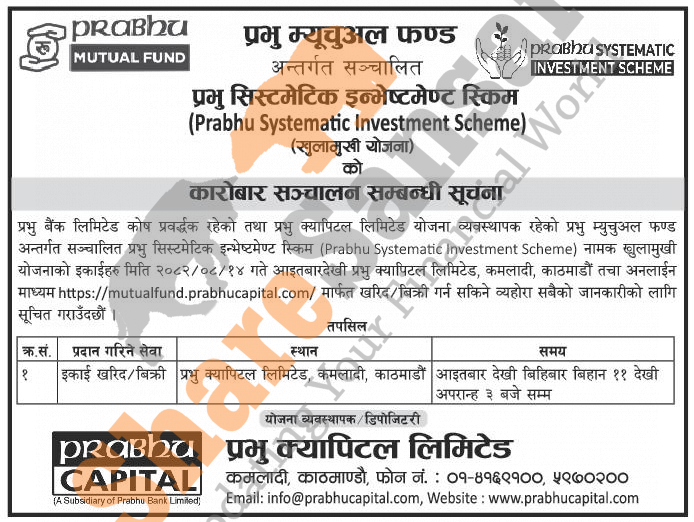 Prabhu Capital Limited has published a notice regarding the online trading time of its open-ended mutual fund “Prabhu Systematic Investment Scheme”.