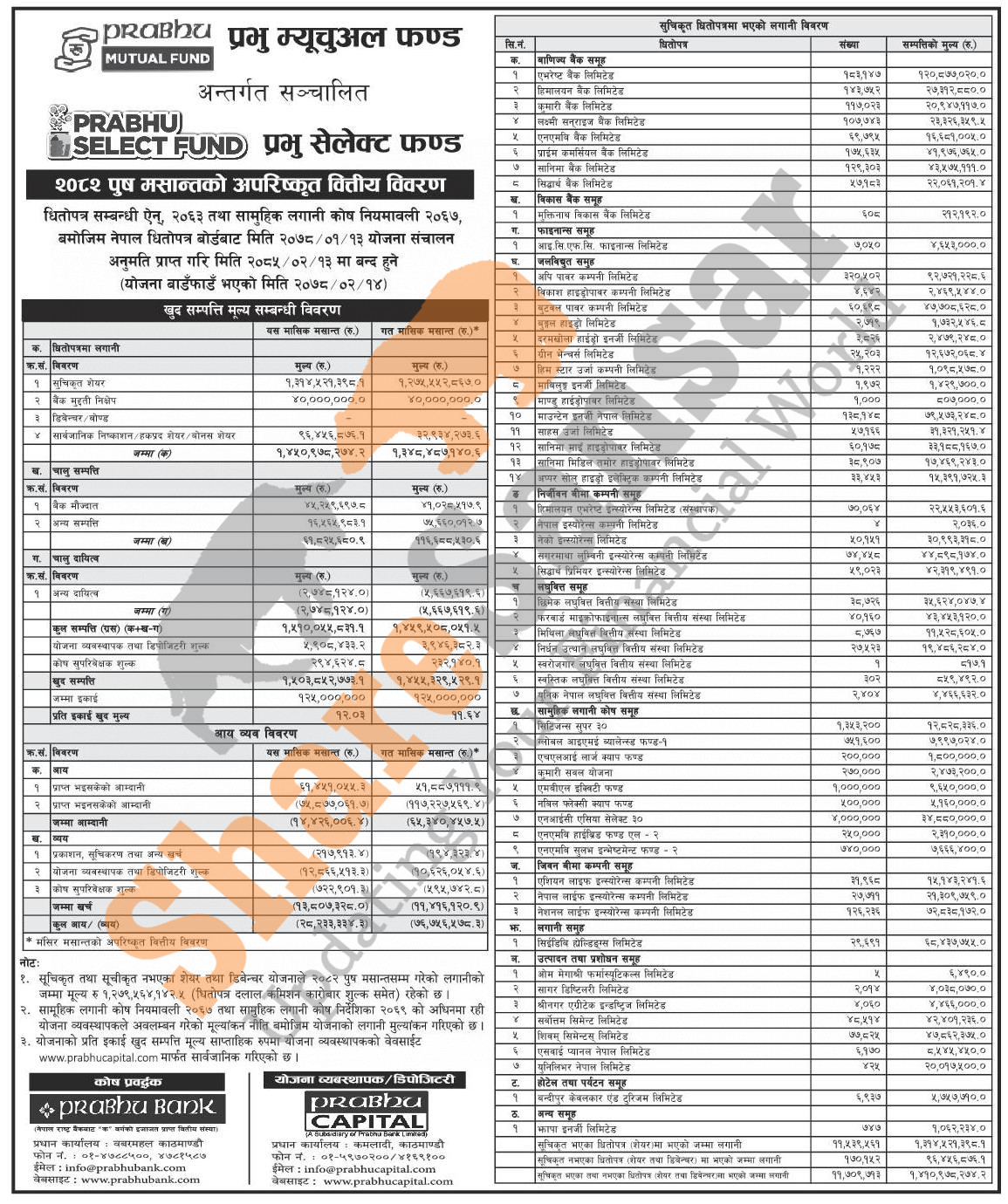 Prabhu Capital Limited has published “Prabhu Select Fund” Net Asset Value (NAV) till Poush, 2082.