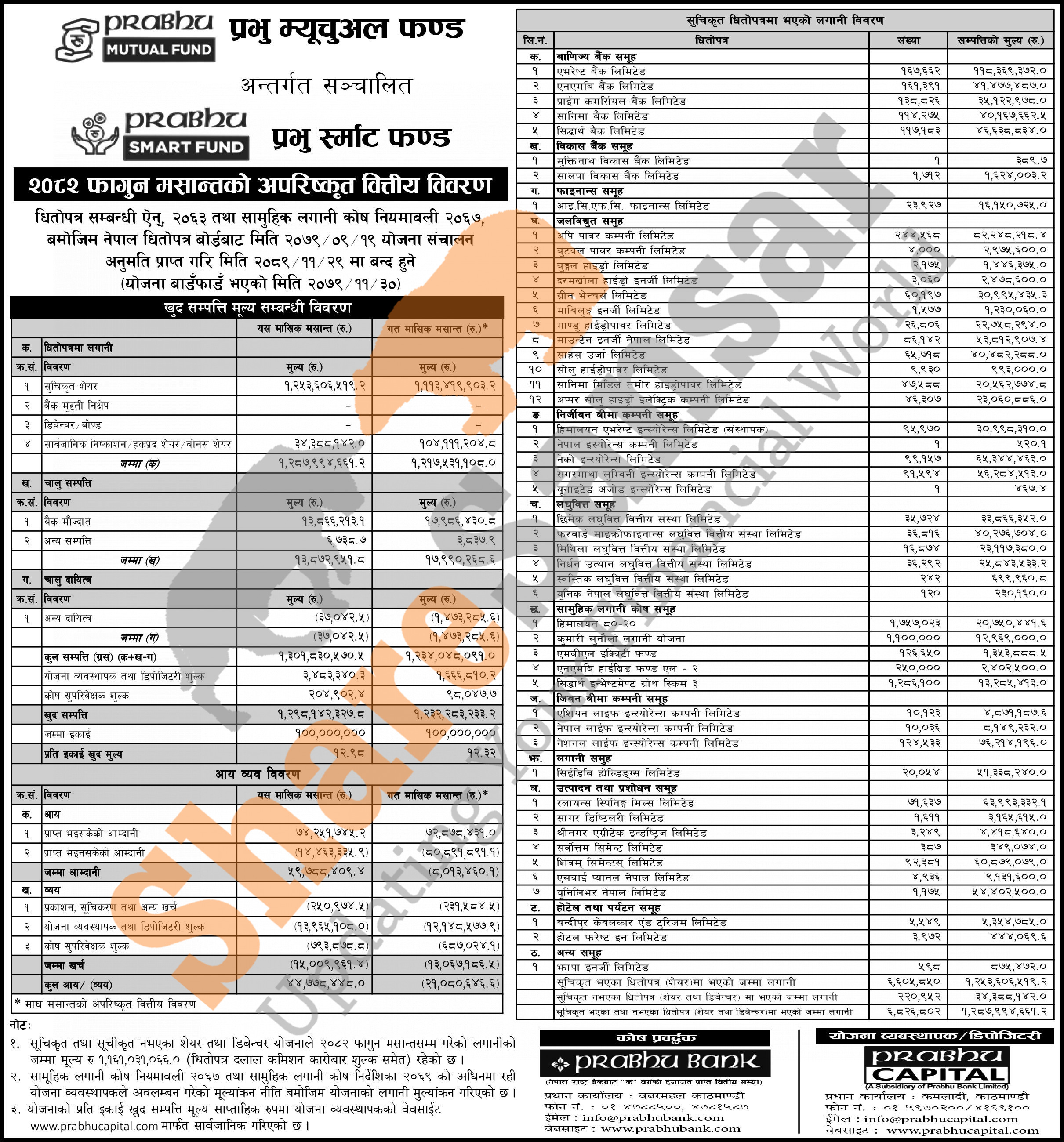 Prabhu Capital Limited has published “Prabhu Smart Fund” Net Asset Value (NAV) till Falgun, 2082.