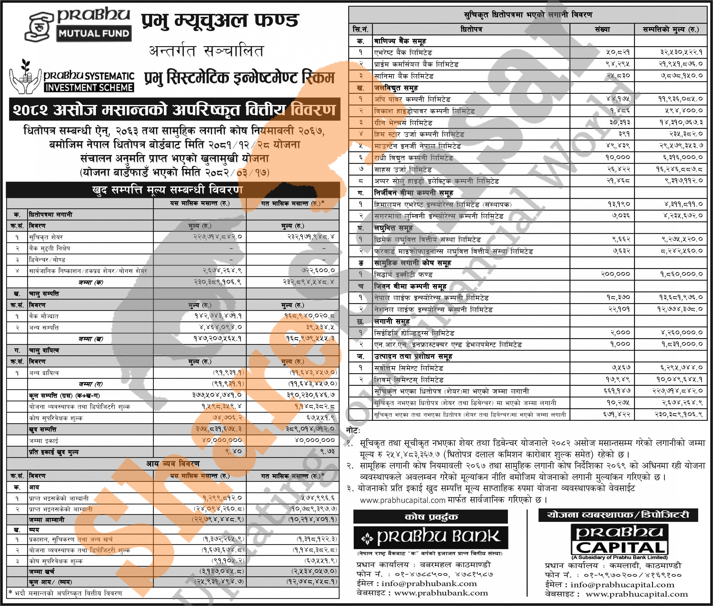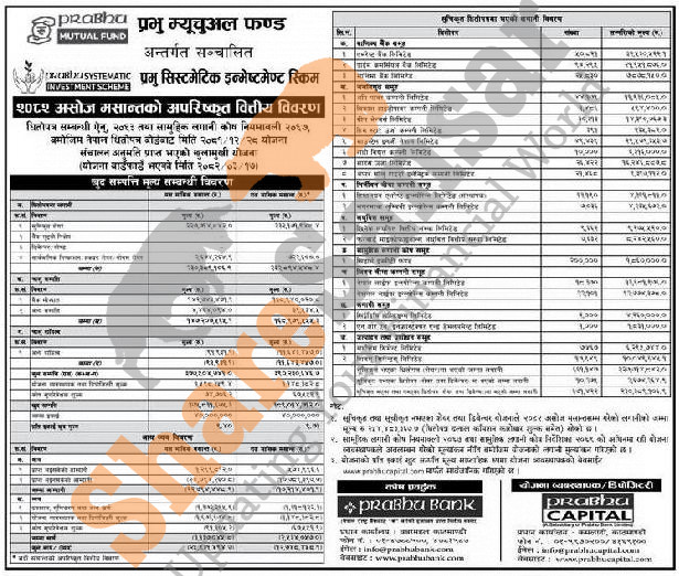 Prabhu Capital Limited has published “Prabhu Systematic Investment Scheme” Net Asset Value (NAV) till Ashwin, 2082.