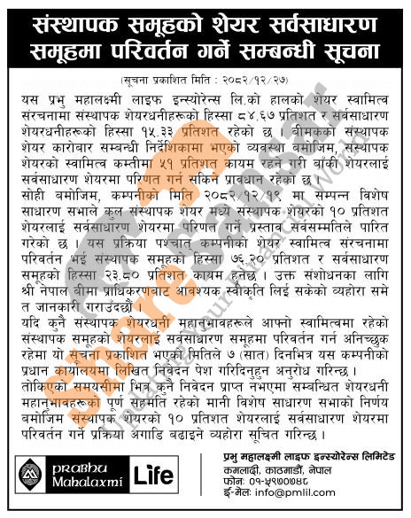Prabhu Mahalaxmi Life Insurance Company Limited has published a notice regarding the conversion of share structure.