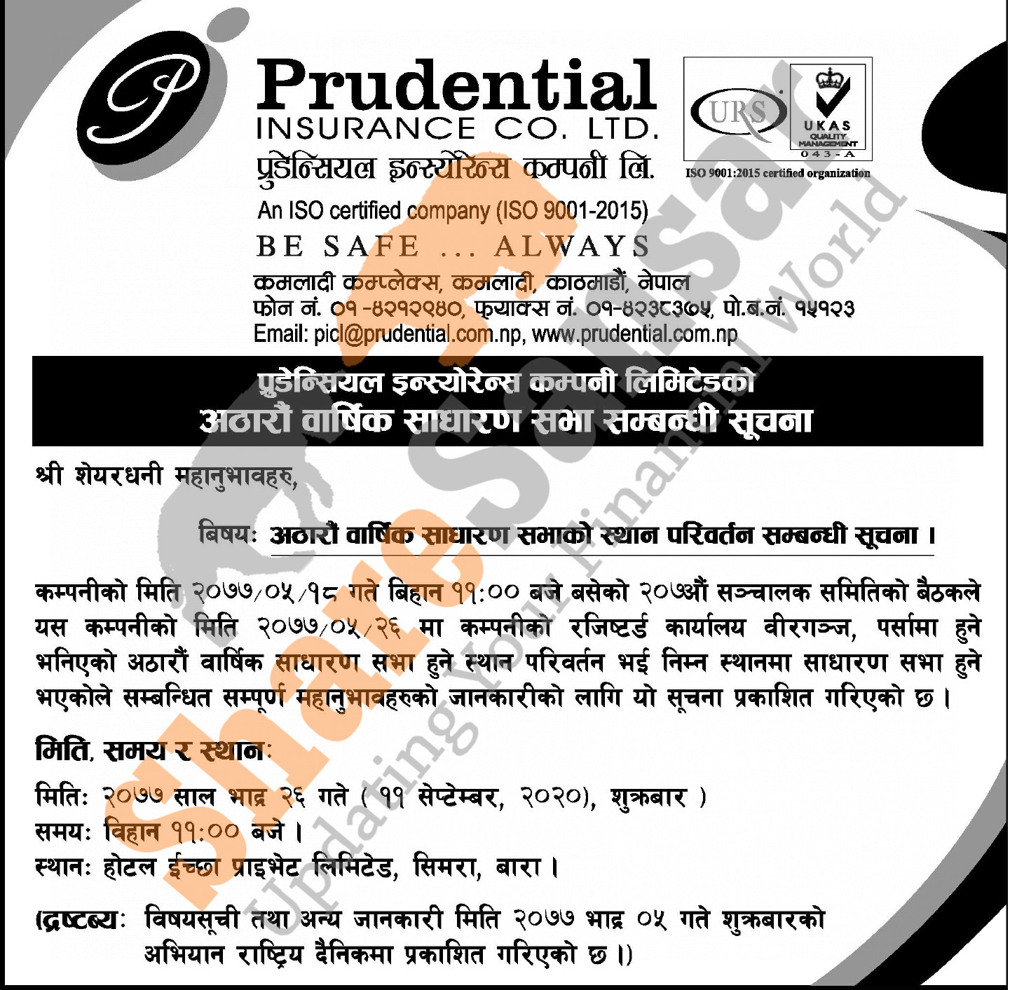 Prudential Insurance Company Limited has changed its 18th AGM venue.