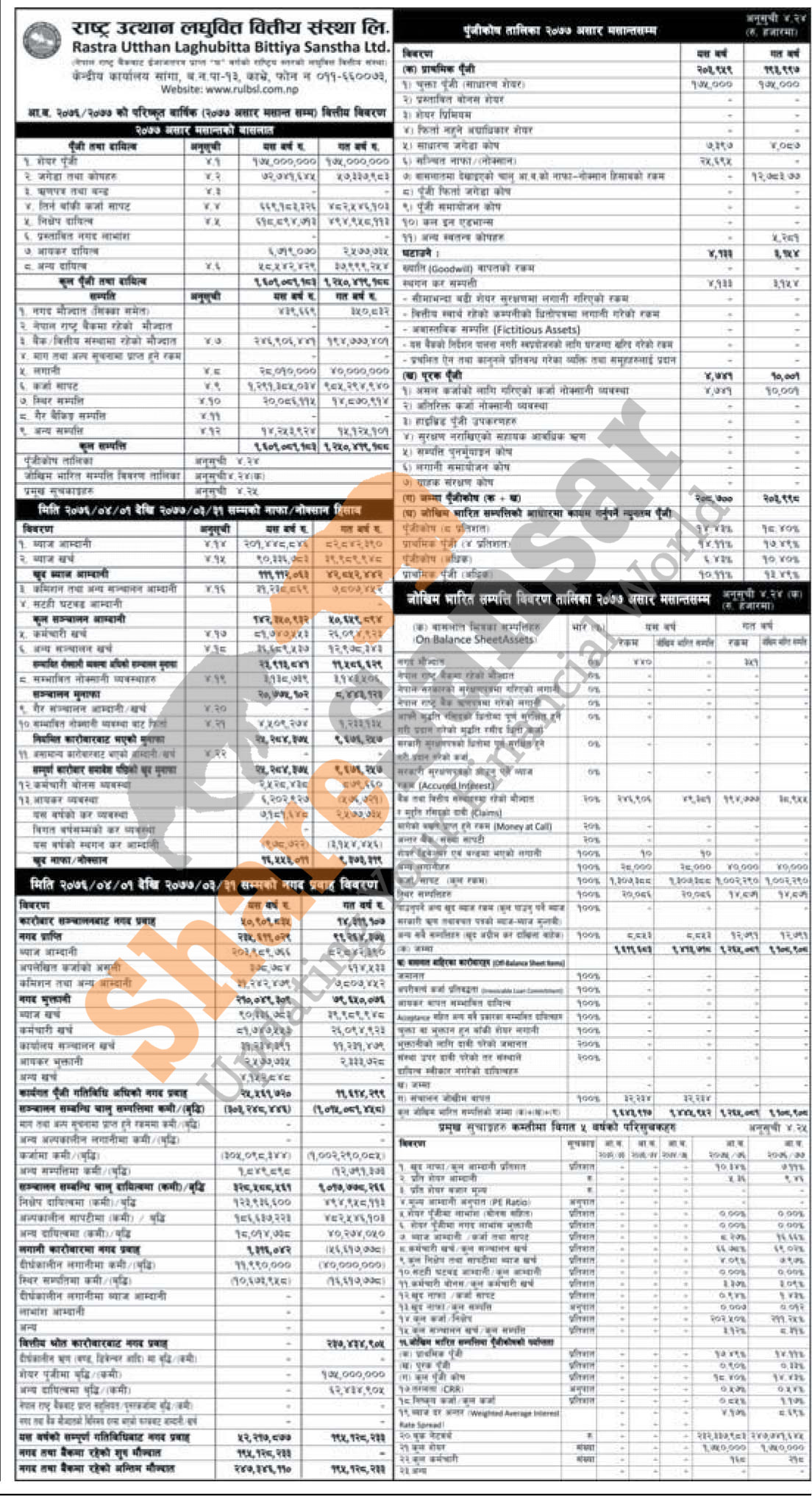Rastra Utthan Laghubitta Bittiya Sanstha Limited has published its annual financial highlights of the fiscal year 2076/77.