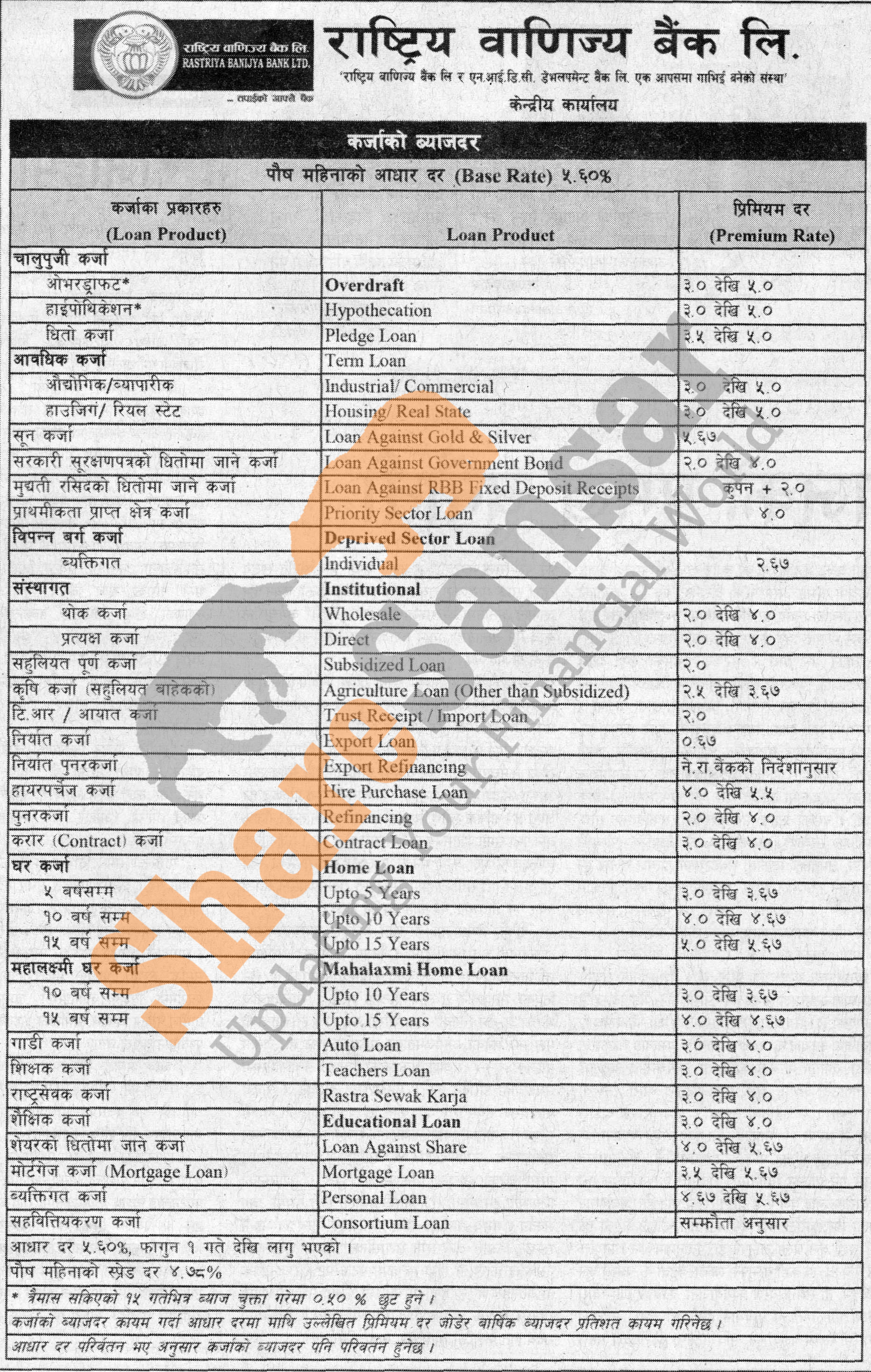 Rastriya Banijya Bank Limited has published a notice regarding new interest rate.