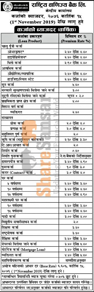 Rastriya Banijya Bank Limited has published a notice regarding new interest rate and its effective from 15th Kartik, 2076.