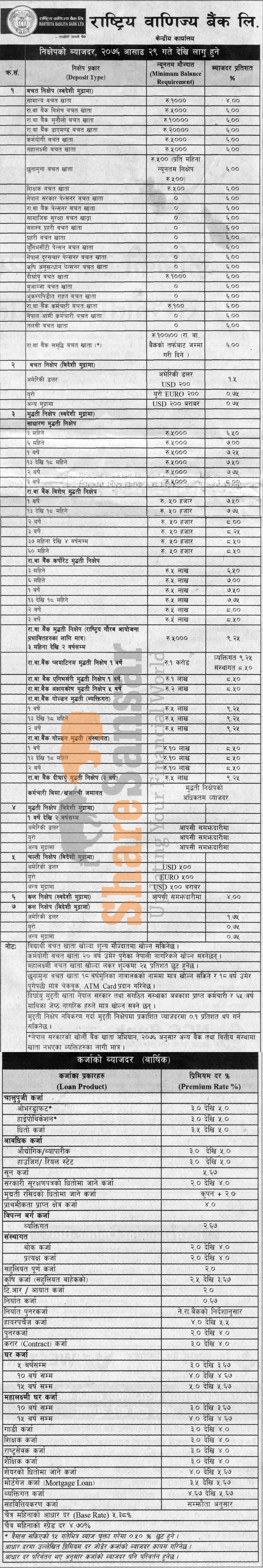 Rastriya Banijya Bank Limited has published a notice regarding new interest rate and its effective from 29th Ashad, 2076.