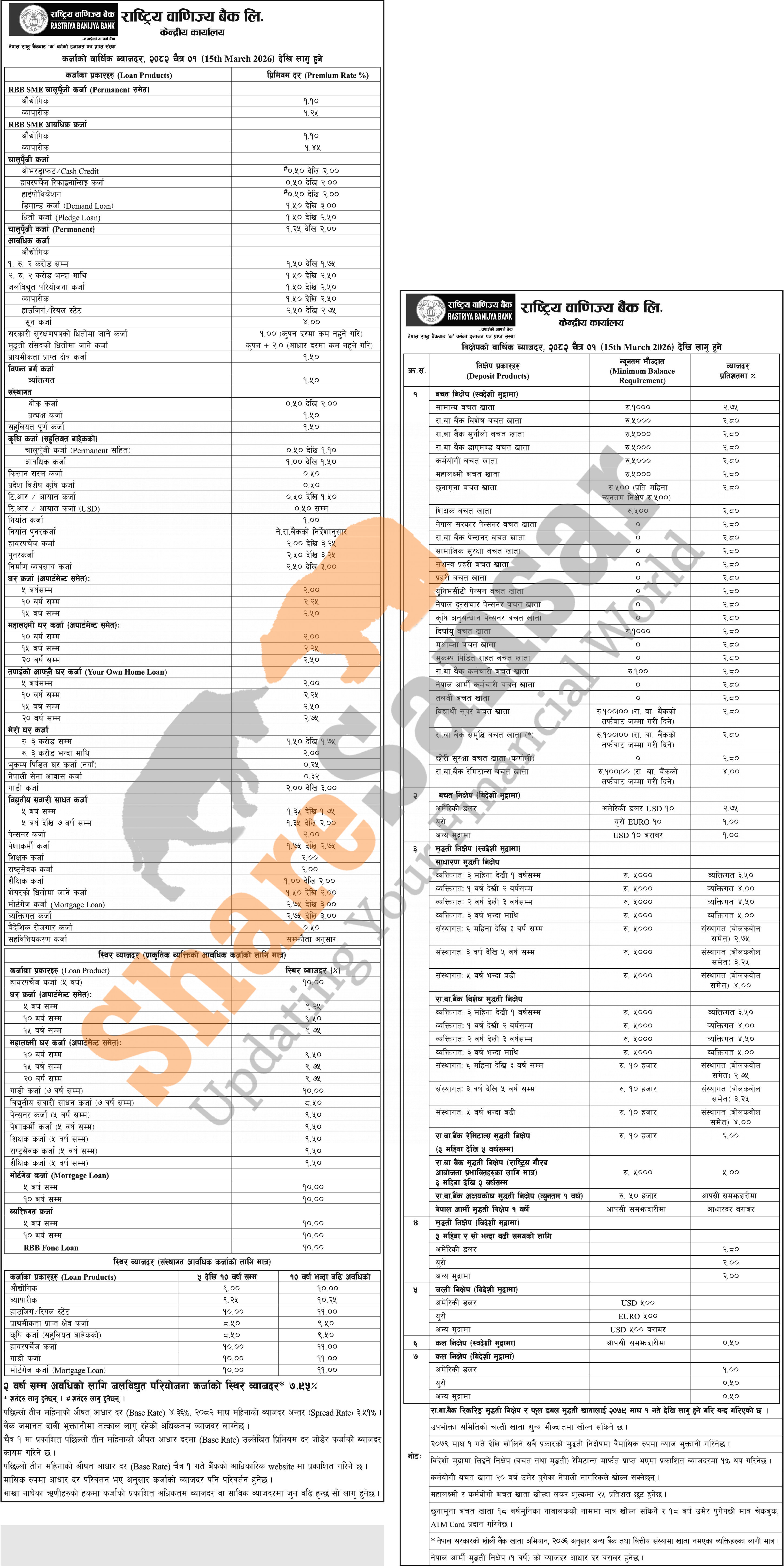Rastriya Banijya Bank Limited has published a notice regarding the new interest rate for deposit and loan products and it's effective from 1st Chaitra, 2082.