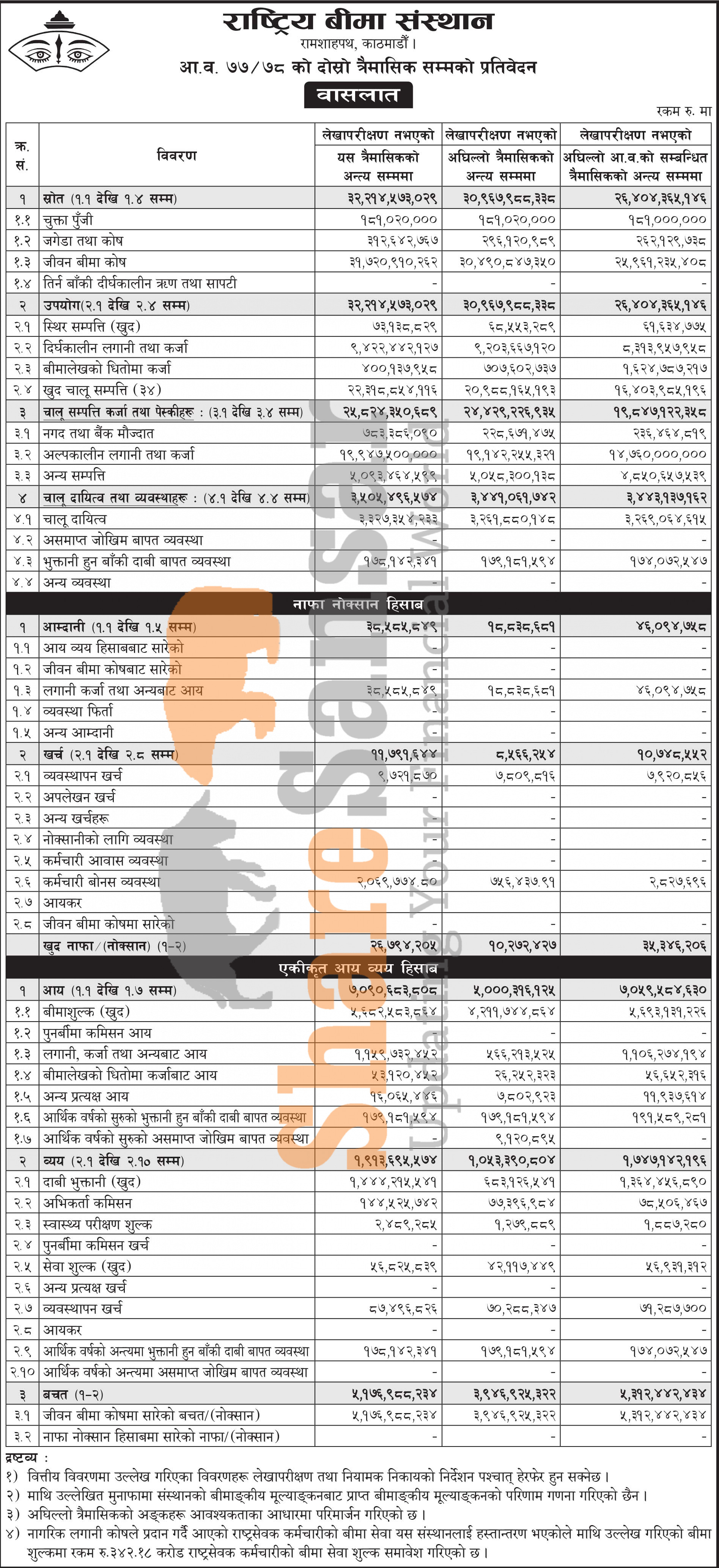 Rastriya Beema Sansthan has posted a net profit of Rs 26.79 million during the 2nd quarter of the fiscal year 2077/78.