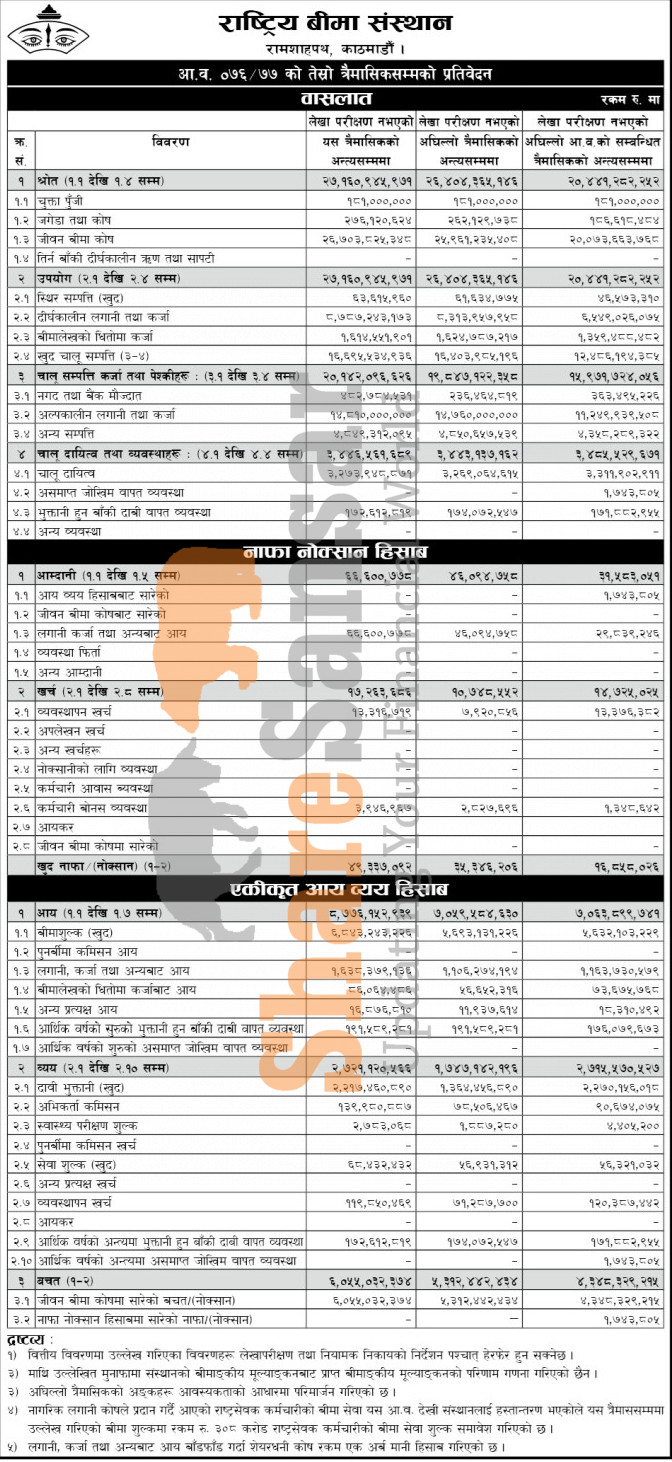 Rastriya Beema Sansthan has posted a net profit of Rs 49.33 million during the 3rd quarter of the fiscal year 2076/77.