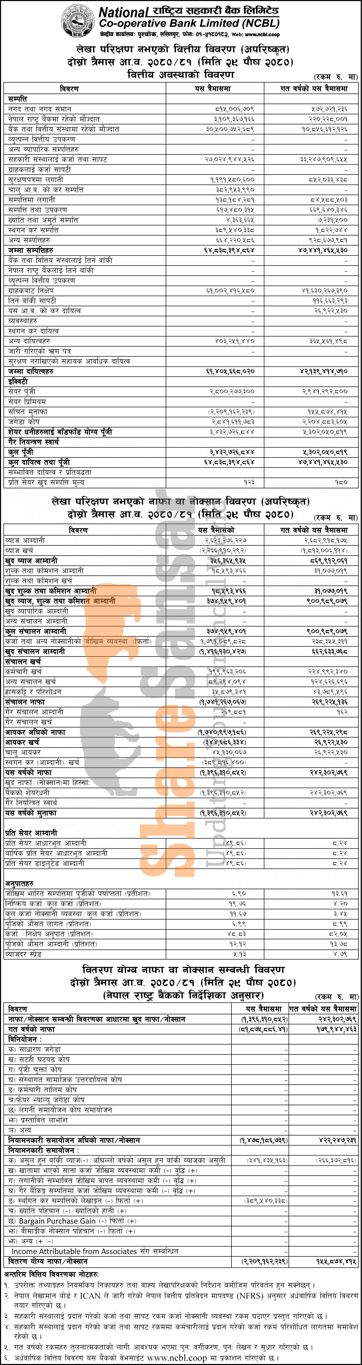 Rastriya Sahakari Bank Limited has posted a net loss of Rs 1.39 billion and published its 2nd quarter company analysis of the fiscal year 2080/81.