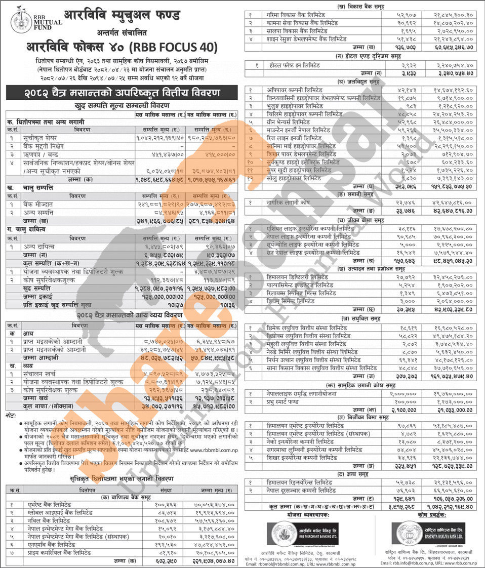RBB Merchant Banking Limited has published “RBB Focus 40” Net Asset Value (NAV) ) till Chaitra, 2082.