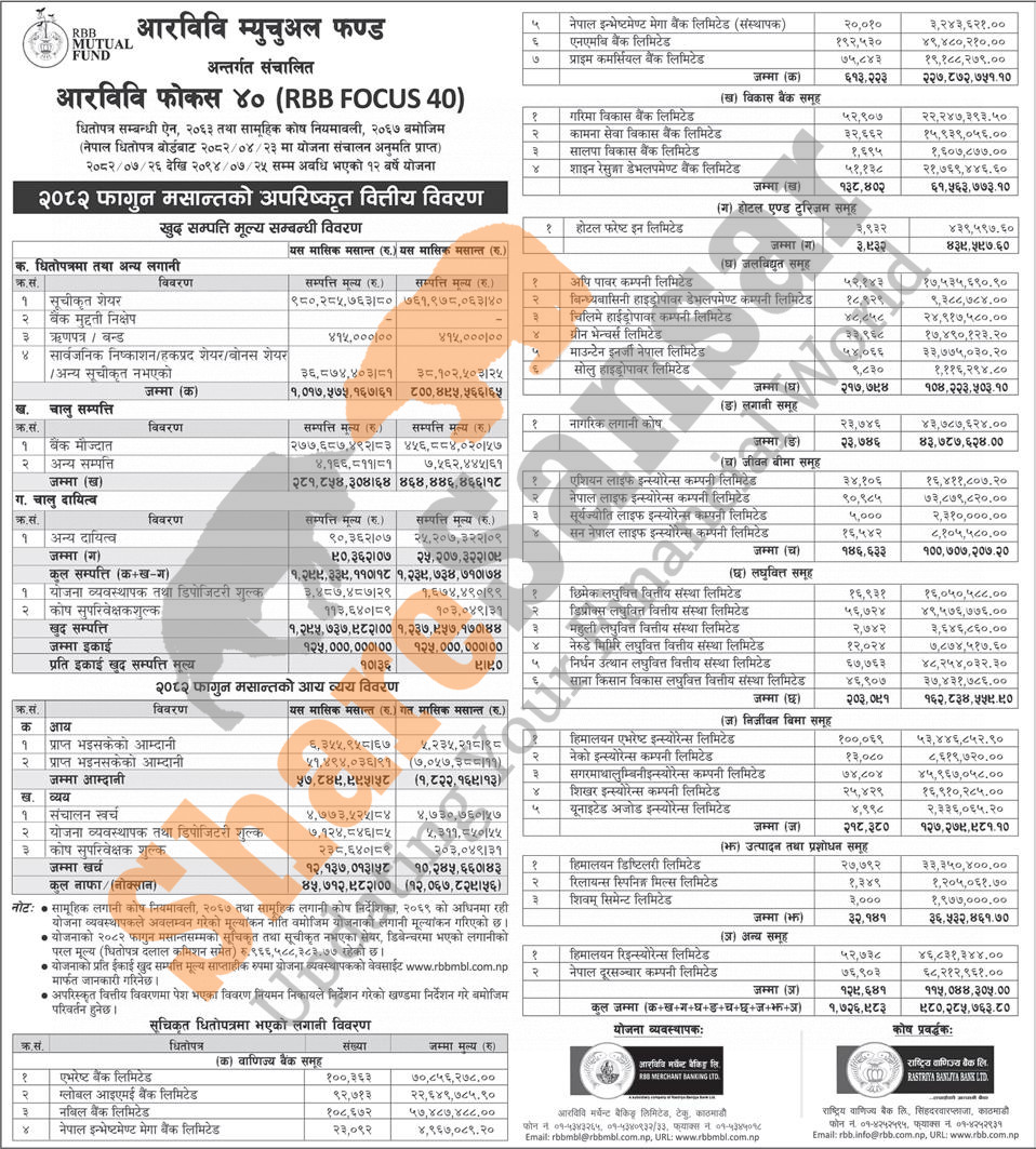 RBB Merchant Banking Limited has published “RBB Focus 40” Net Asset Value (NAV) ) till Falgun, 2082.