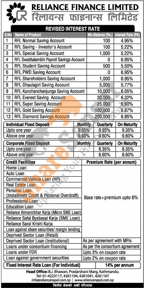 Reliance Finance Limited has published a notice regarding new revised interest rate for the month of Kartik.