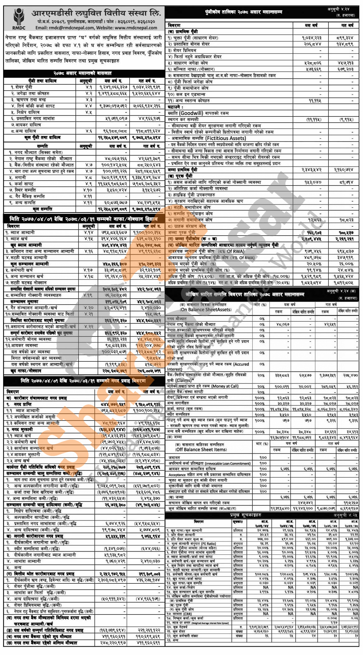 RMDC Laghubitta Bittiya Sanstha Limited has published its annual financial highlights of the fiscal year 2077/78.