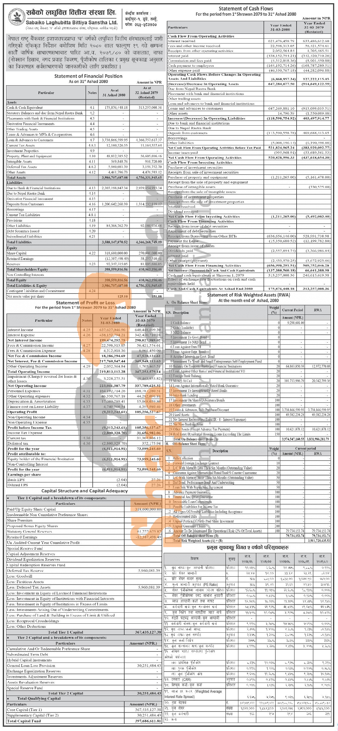 Sabaiko Laghubitta Bittiya Sanstha Limited has published its annual financial statement of the fiscal year 2079/80.