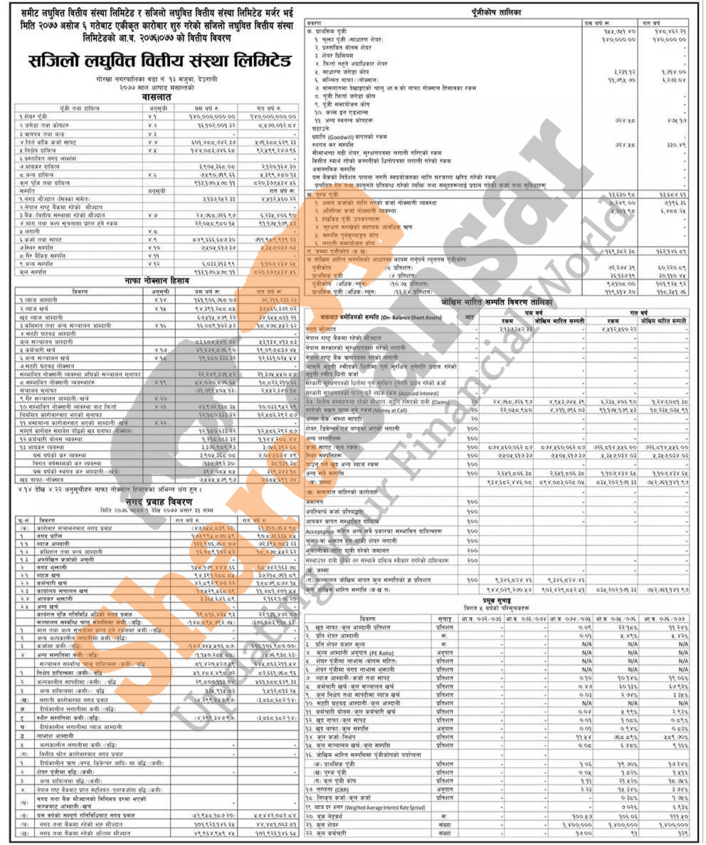 Sajilo Laghubitta Bittiya Sanstha Limited has published its annual financial highlights of the fiscal year 2076/77.