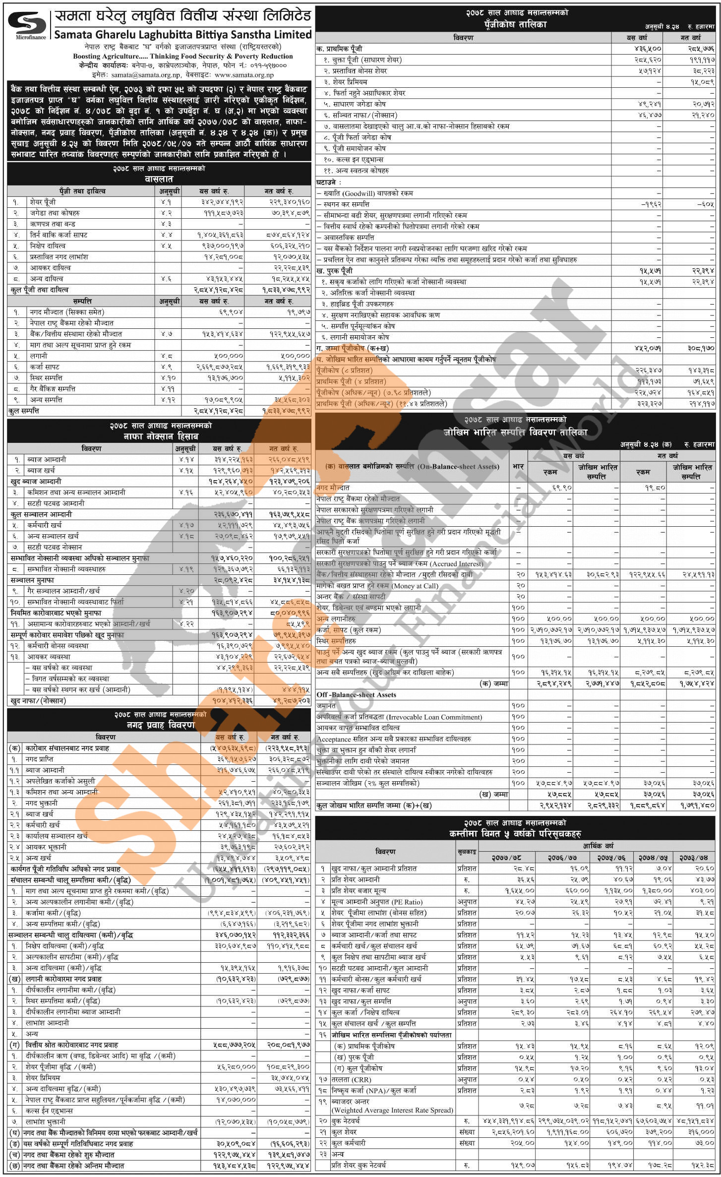 Samata Gharelu Laghubitta Bittiya Sanstha Limited has published its annual financial statement of the fiscal year 2077/78.