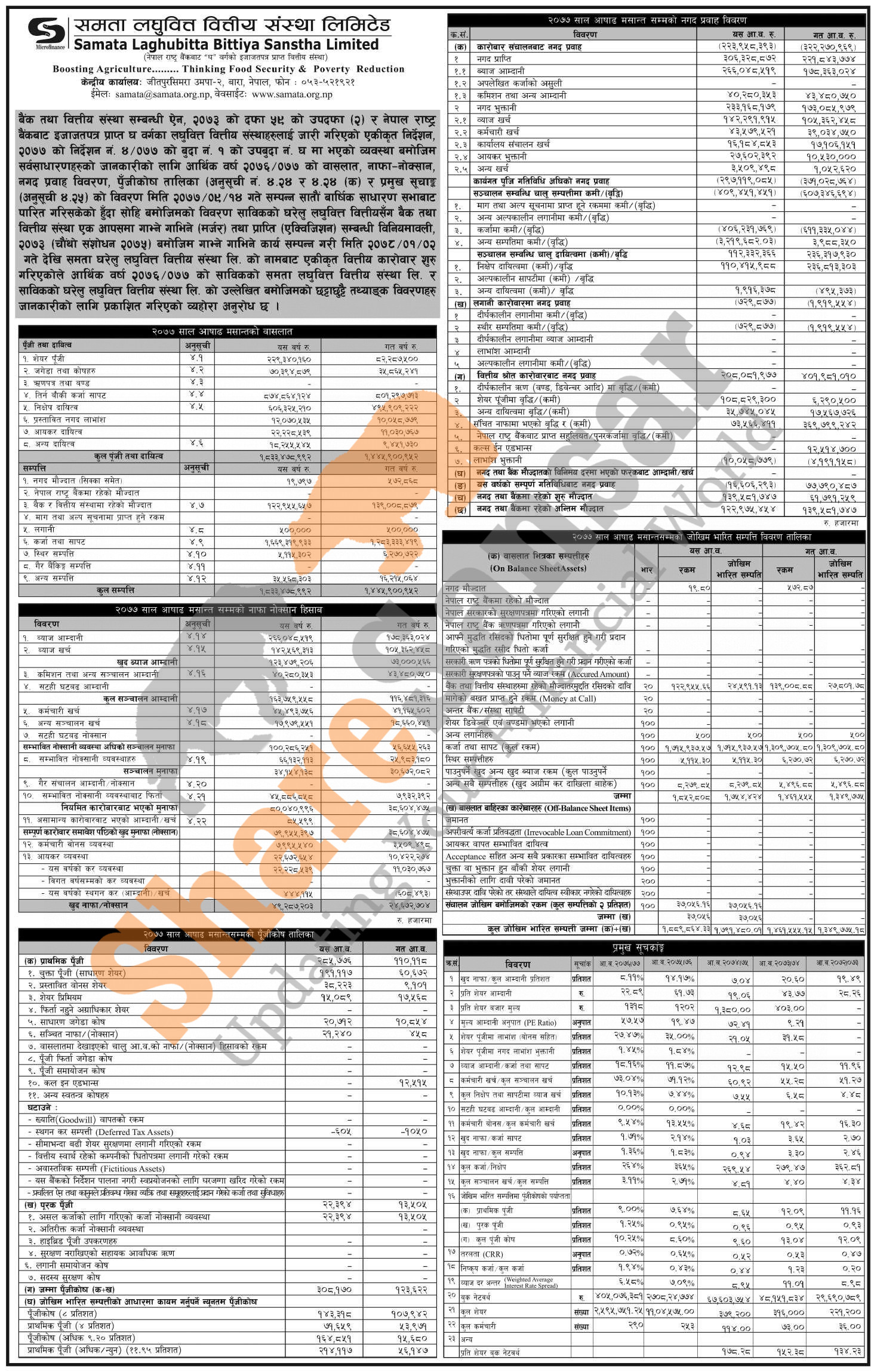 Samata Laghubitta Bittiya Sanstha Limited has published its annual financial highlights of the fiscal year 2076/77.