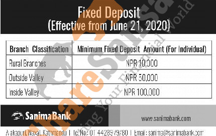 Sanima Bank Limited has published a notice regarding new interest rate and its effective from 7th Ashad, 2077.