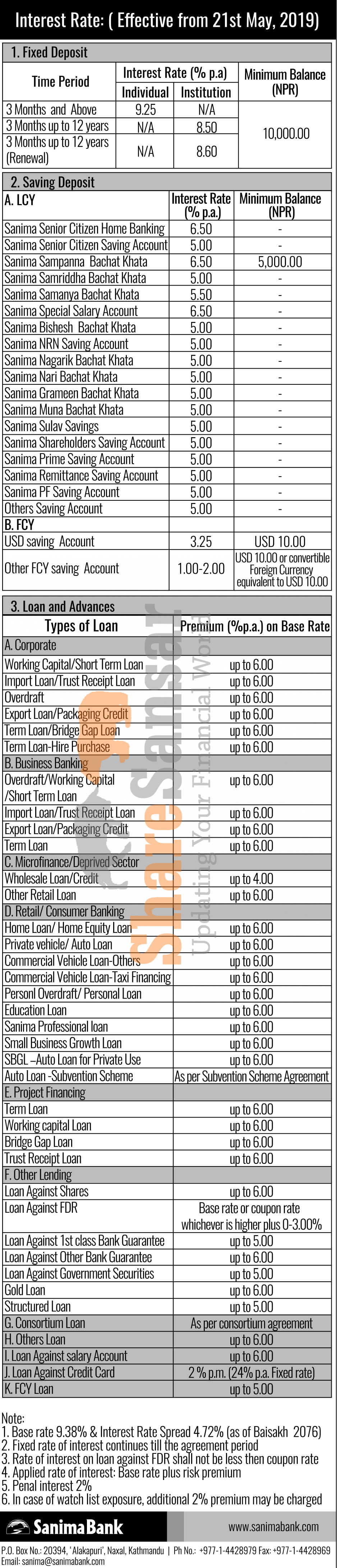 Sanima Bank Limited has published a notice regarding new interest rate and its effective from 7th Jestha, 2076.