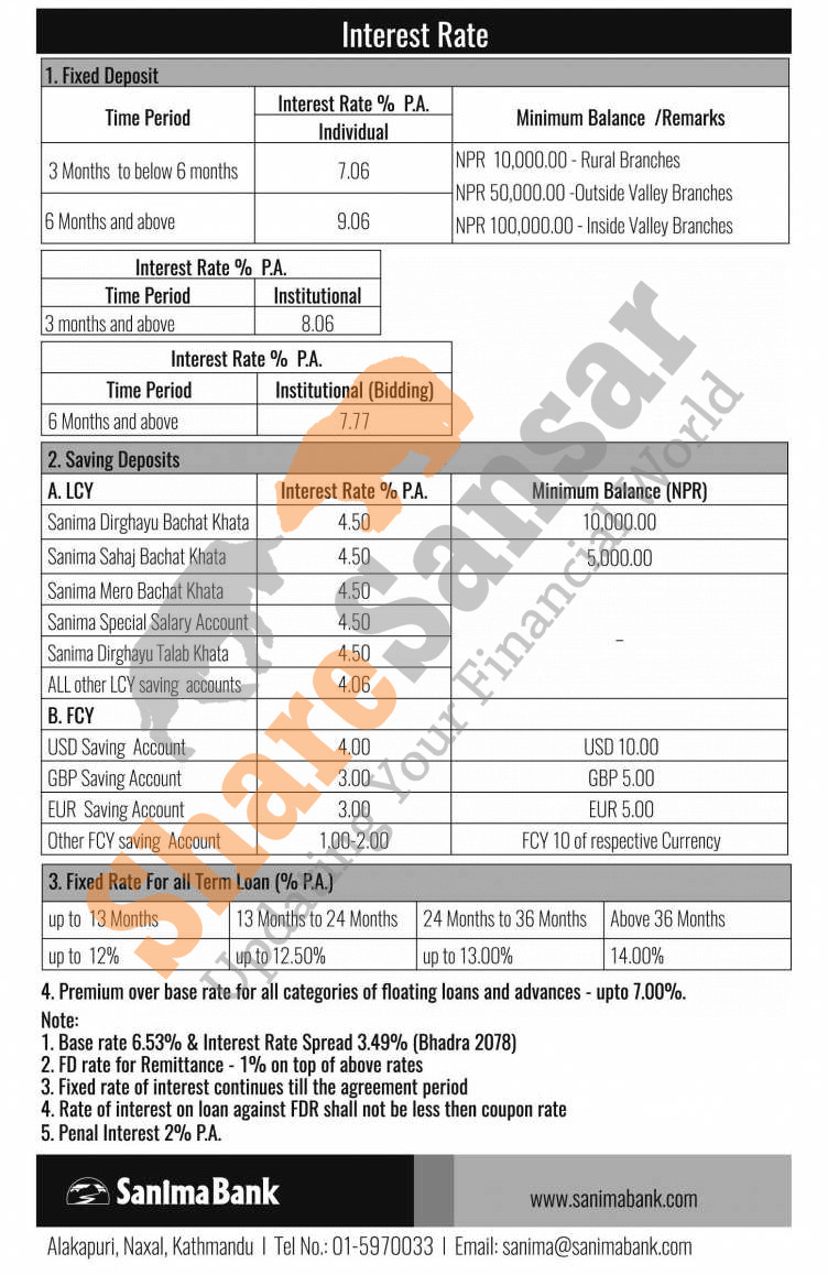 Sanima Bank Limited has published a notice regarding new revised interest rate for the month of Kartik.