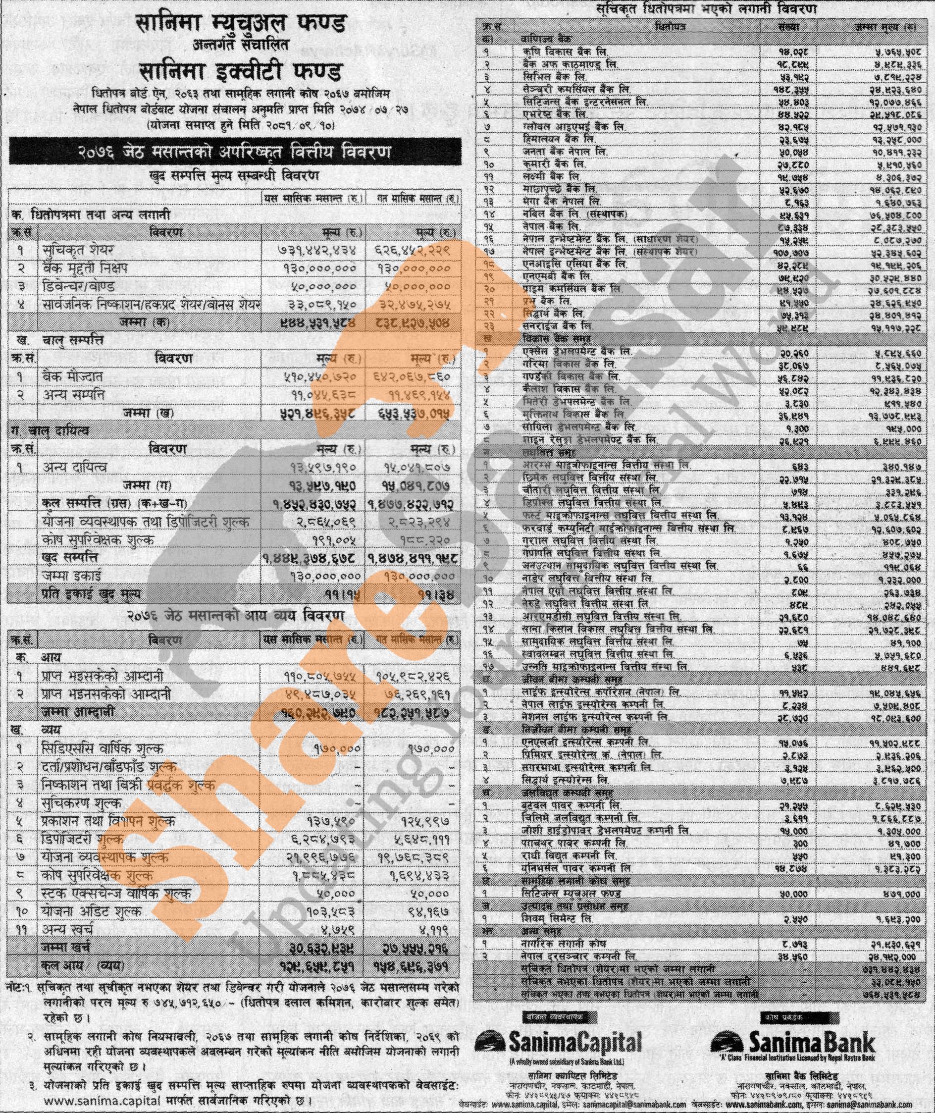 Sanima Capital Limited has published “Sanima Equity Fund” Net Asset Value (NAV) till Jestha, 2076.