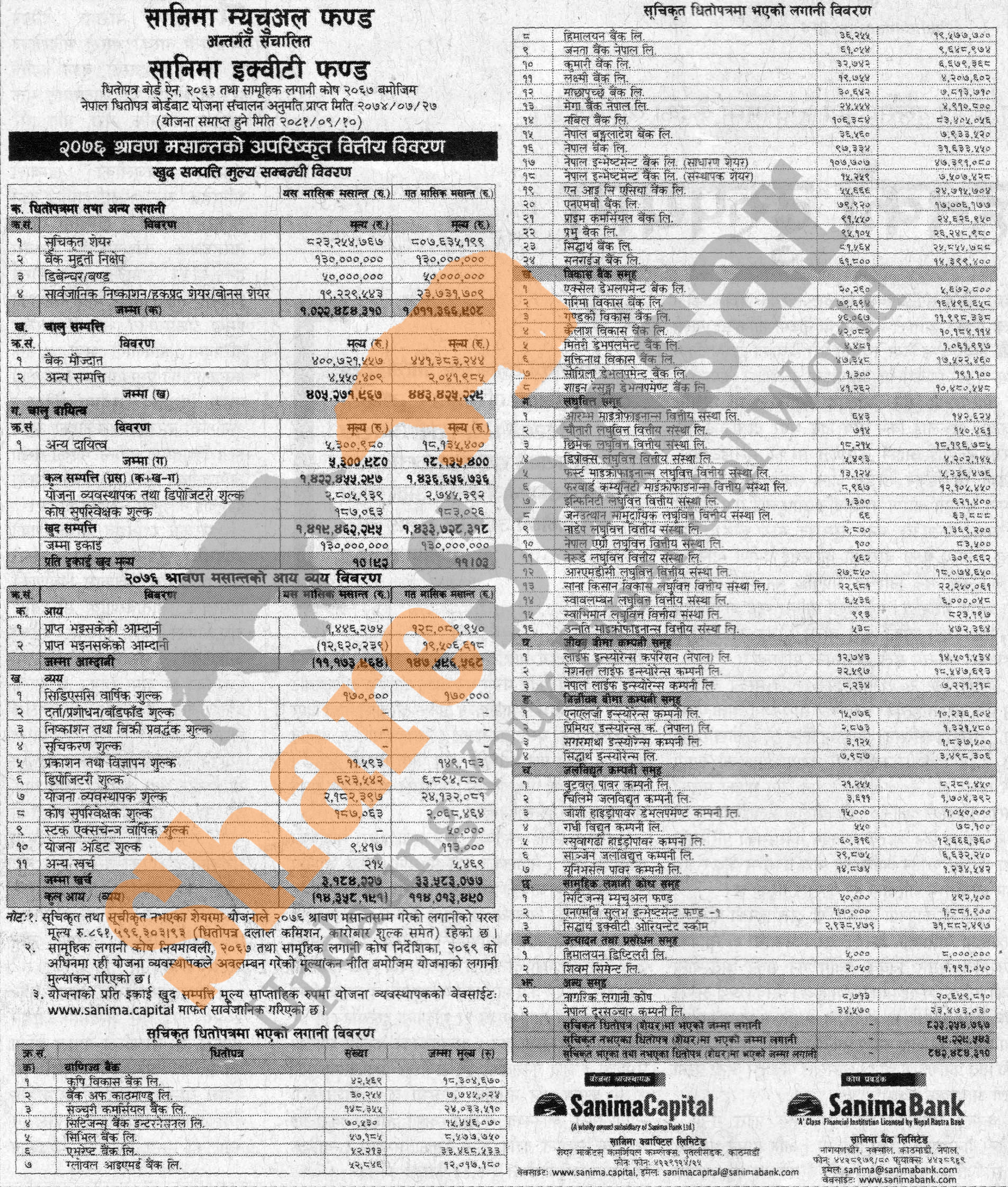 Sanima Capital Limited has published “Sanima Equity Fund” Net Asset Value (NAV) till Shrawan, 2076.