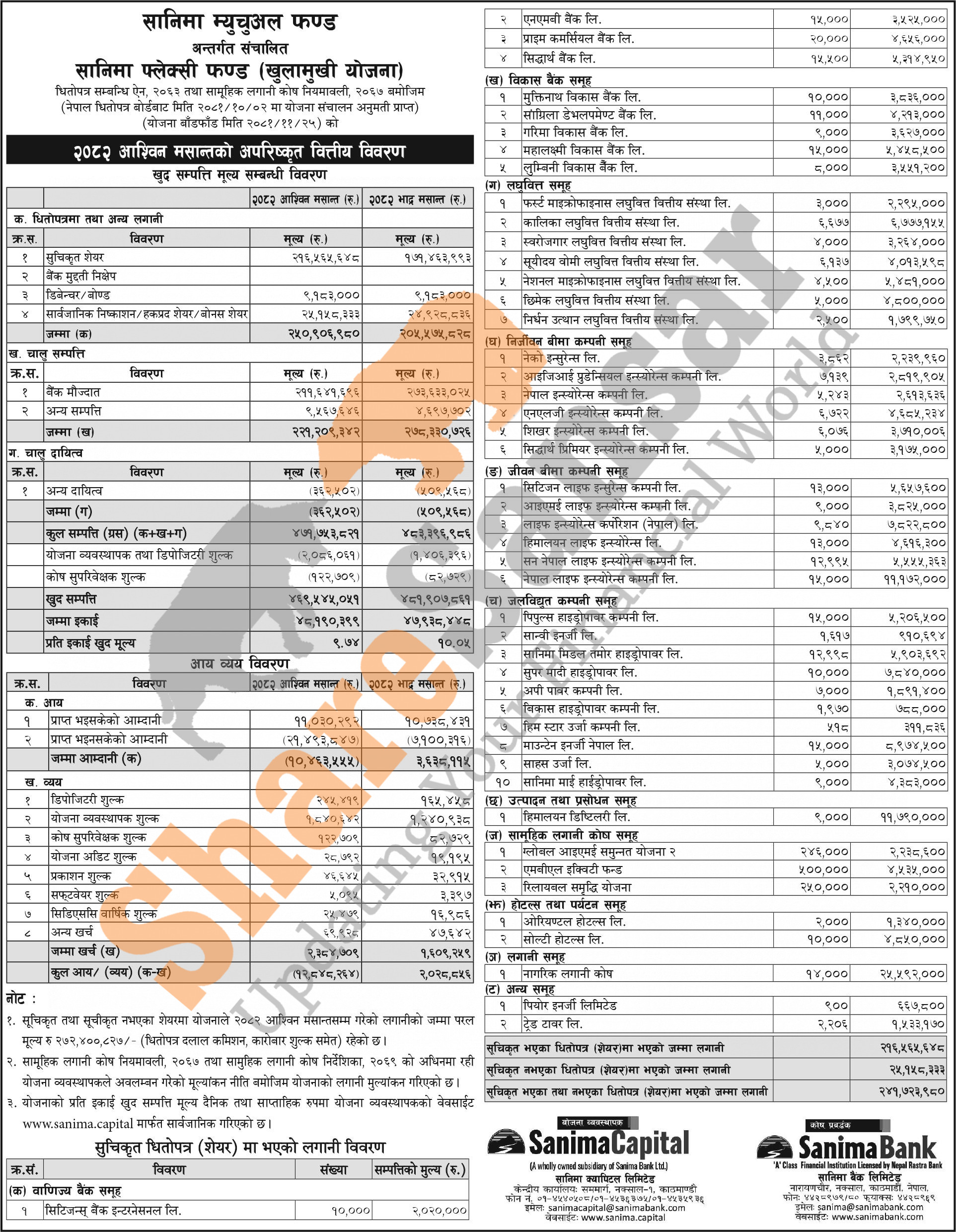 Sanima Capital Limited has published “Sanima Flexi Fund” Net Asset Value (NAV) till Ashwin, 2082.