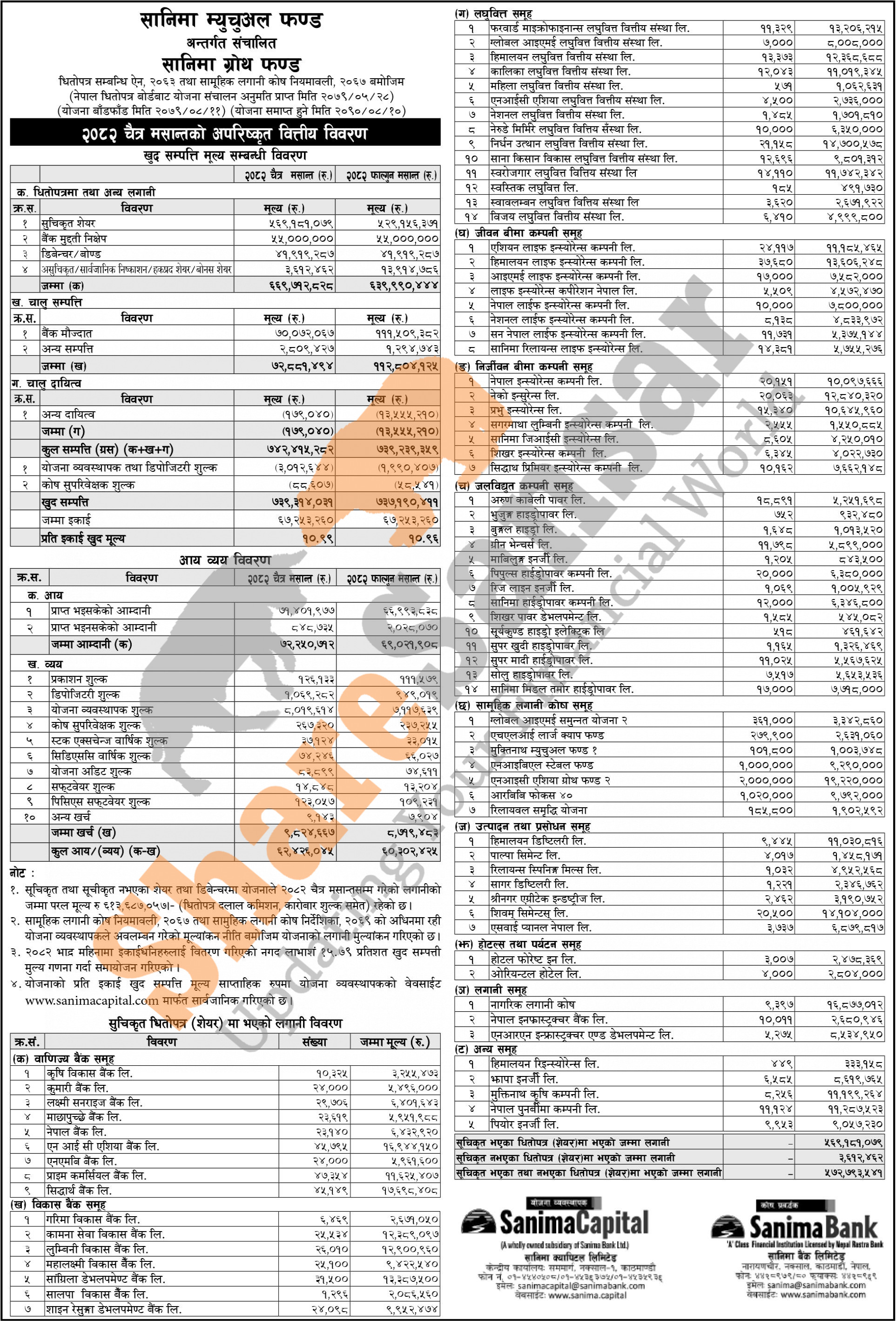 Sanima Capital Limited has published “Sanima Growth Fund” Net Asset Value (NAV) till Chaitra, 2082.