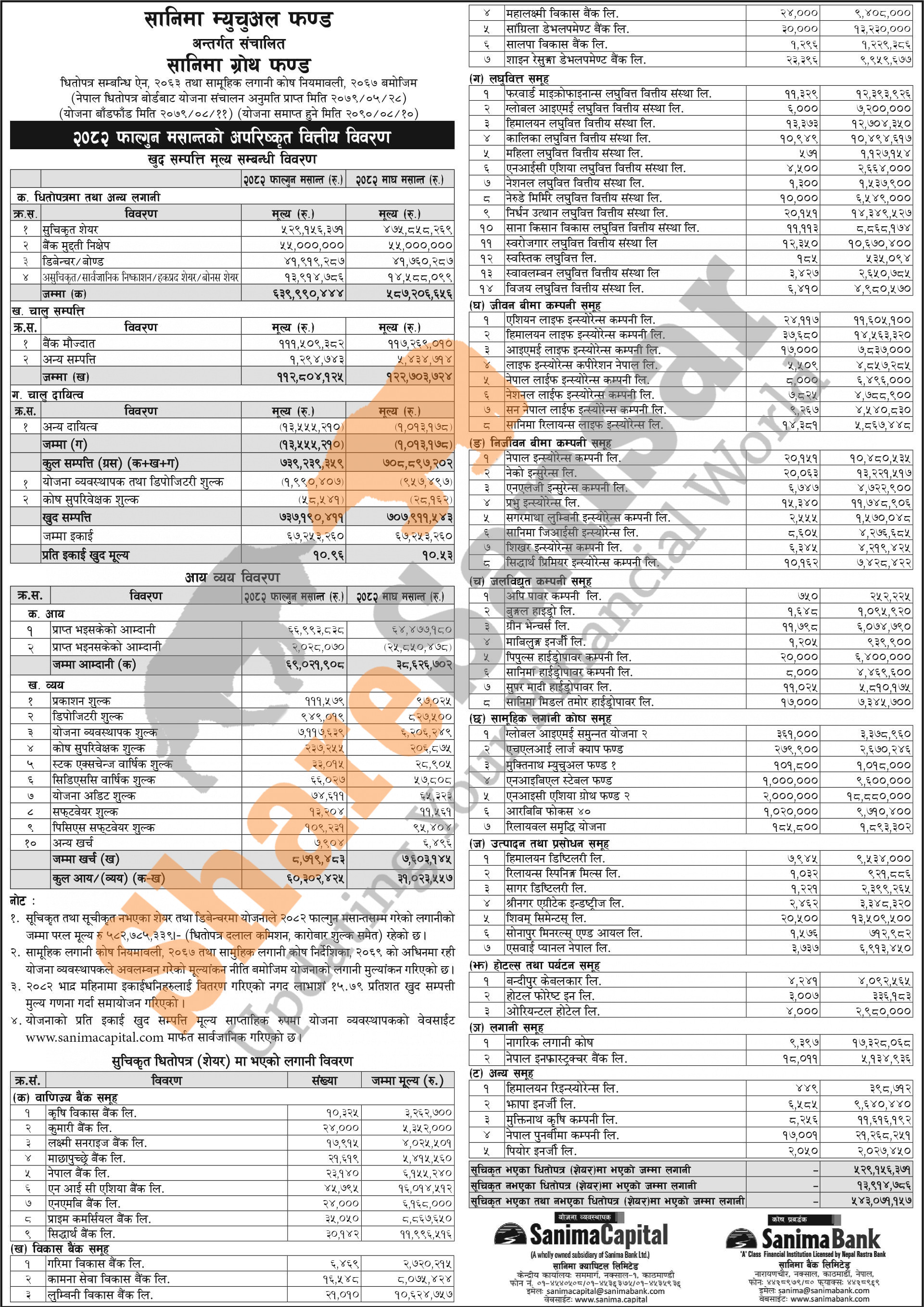 Sanima Capital Limited has published “Sanima Growth Fund” Net Asset Value (NAV) till Falgun, 2082.