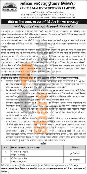Sanima Mai Hydropower Limited has published the minutes of its 14th AGM.