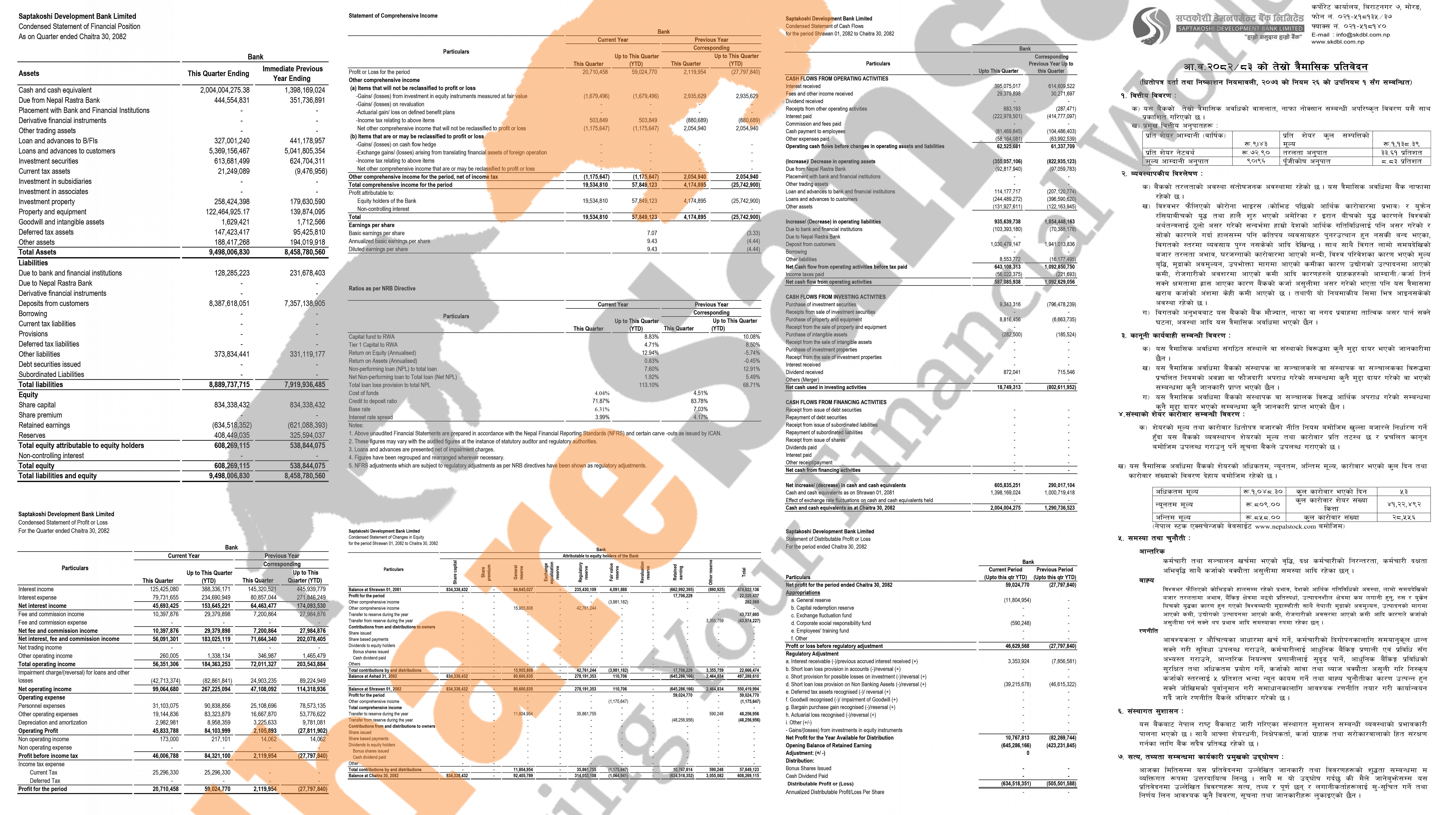 Saptakoshi Development Bank Limited has posted a net profit of Rs 59.02 million and published its 3rd quarter company analysis of the fiscal year 2082/83.