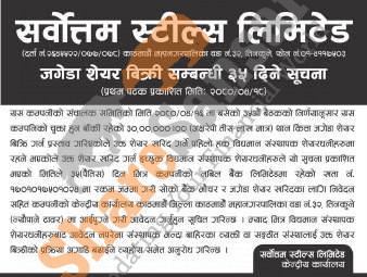 Sarbottam Steel Limited has published a notice regarding sale of reserve shares to its promoter shareholders.