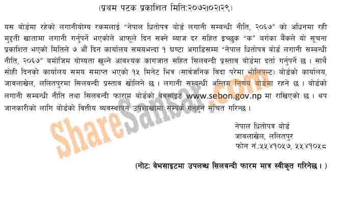 Securities Board of Nepal has published a notice seeking quotation of Fixed Deposit interest.