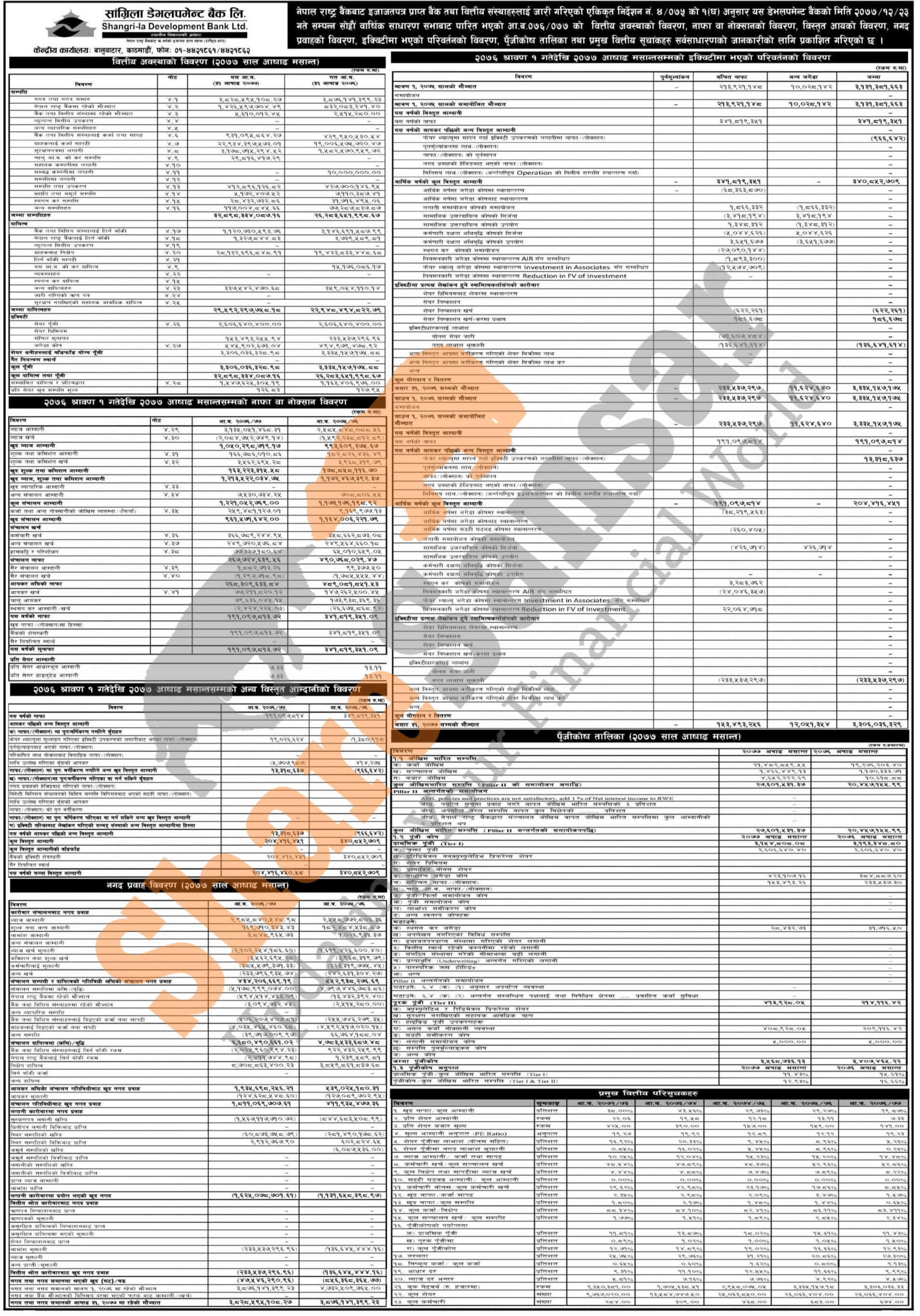 Shangri-la Development Bank Limited has published its annual financial highlights of the fiscal year 2076/77.