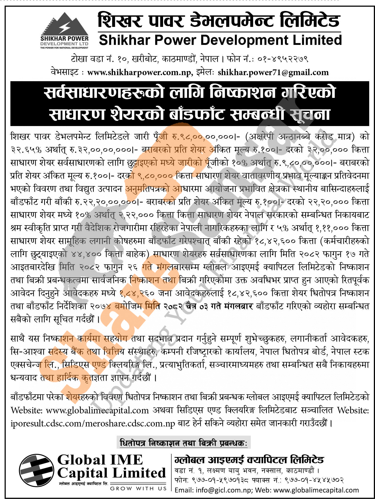 Shikhar Power Development Limited has allotted its 18,42,600 units IPO shares to the general public on 3rd Chaitra, 2082.