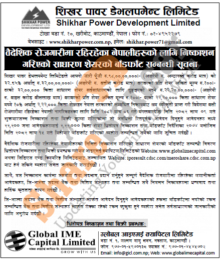 Shikhar Power Development Limited has allotted its 2,22,000 units IPO Shares to Foreign Nepalese Employees on 15th Magh, 2082.