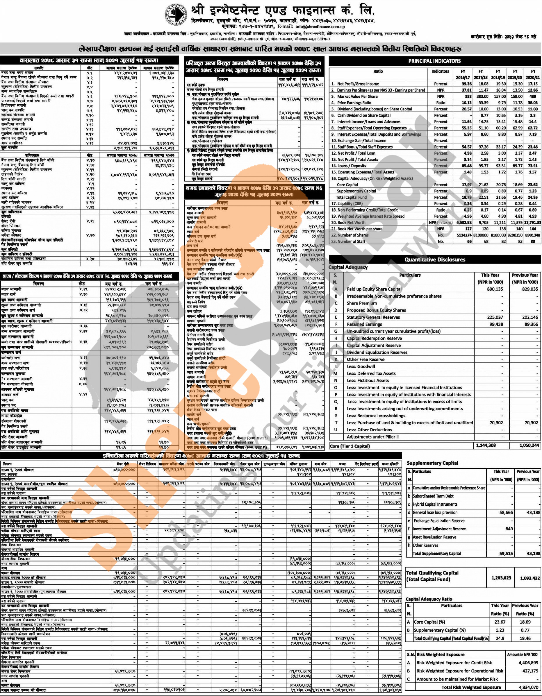 Shree Investment and Finance Company Limited has published the minutes of its 27th AGM and its annual financial statement of the fiscal year 2077/78.