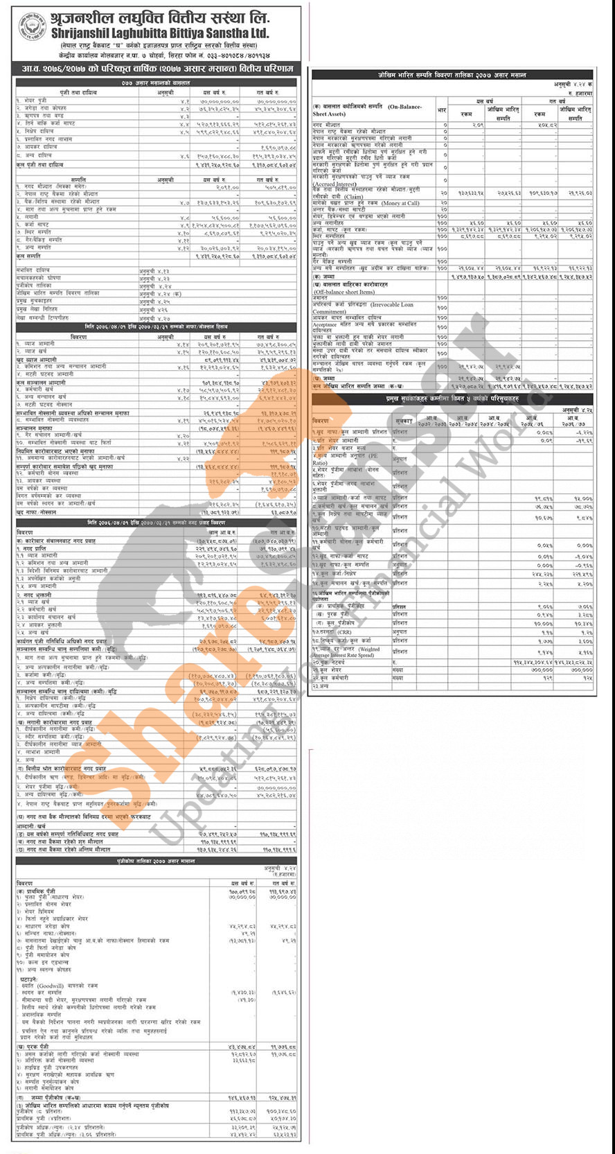 Shrijanshil Laghubitta Bittiya Sanstha Limited has published its financial highlights of the fiscal year 2076/77.