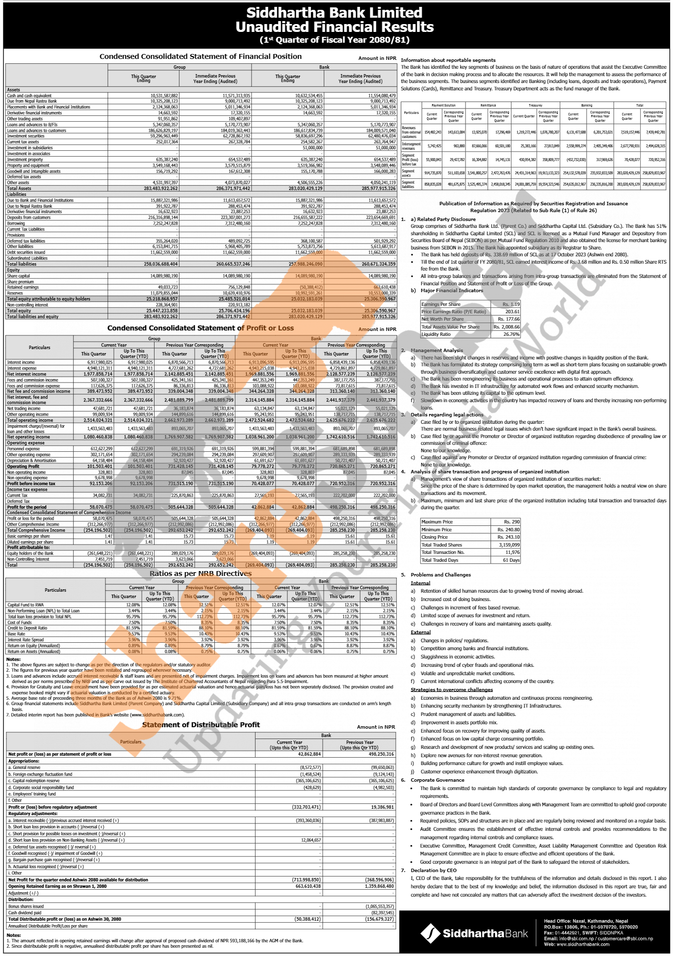 Siddhartha Bank Limited has posted a net profit of Rs 42.86 million and published its 1st quarter company analysis of the fiscal year 2080/81.