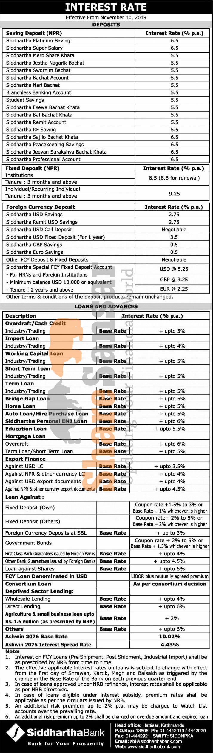 Siddhartha Bank Limited has published a notice regarding new interest rate and its effective from 24th Kartik, 2076.